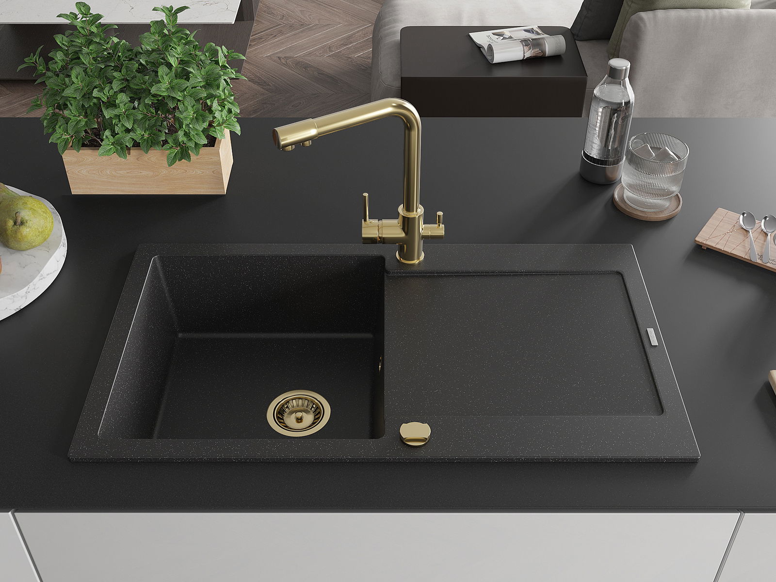 The sink is made from high-quality granite. It serves as an elegant and, above all, practical addition to any kitchen, regardless of its style. The high quality and durability of granite ensure many years of use.