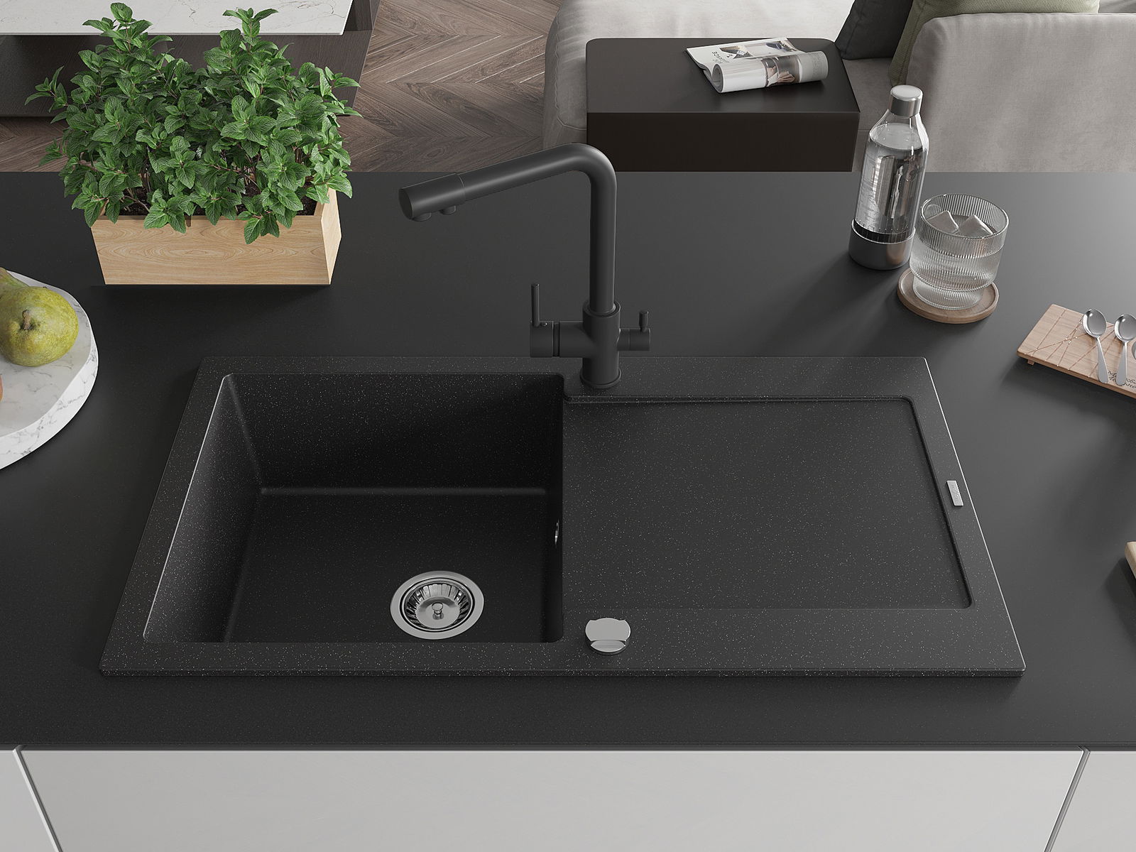 The sink is made from high-quality granite. It serves as an elegant and, above all, practical addition to any kitchen, regardless of its style. The high quality and durability of granite ensure many years of use.