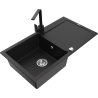 Mexen Leo granite sink 1-bowl with drainer and Rita kitchen tap, speckled black - 6501-76-670300-70