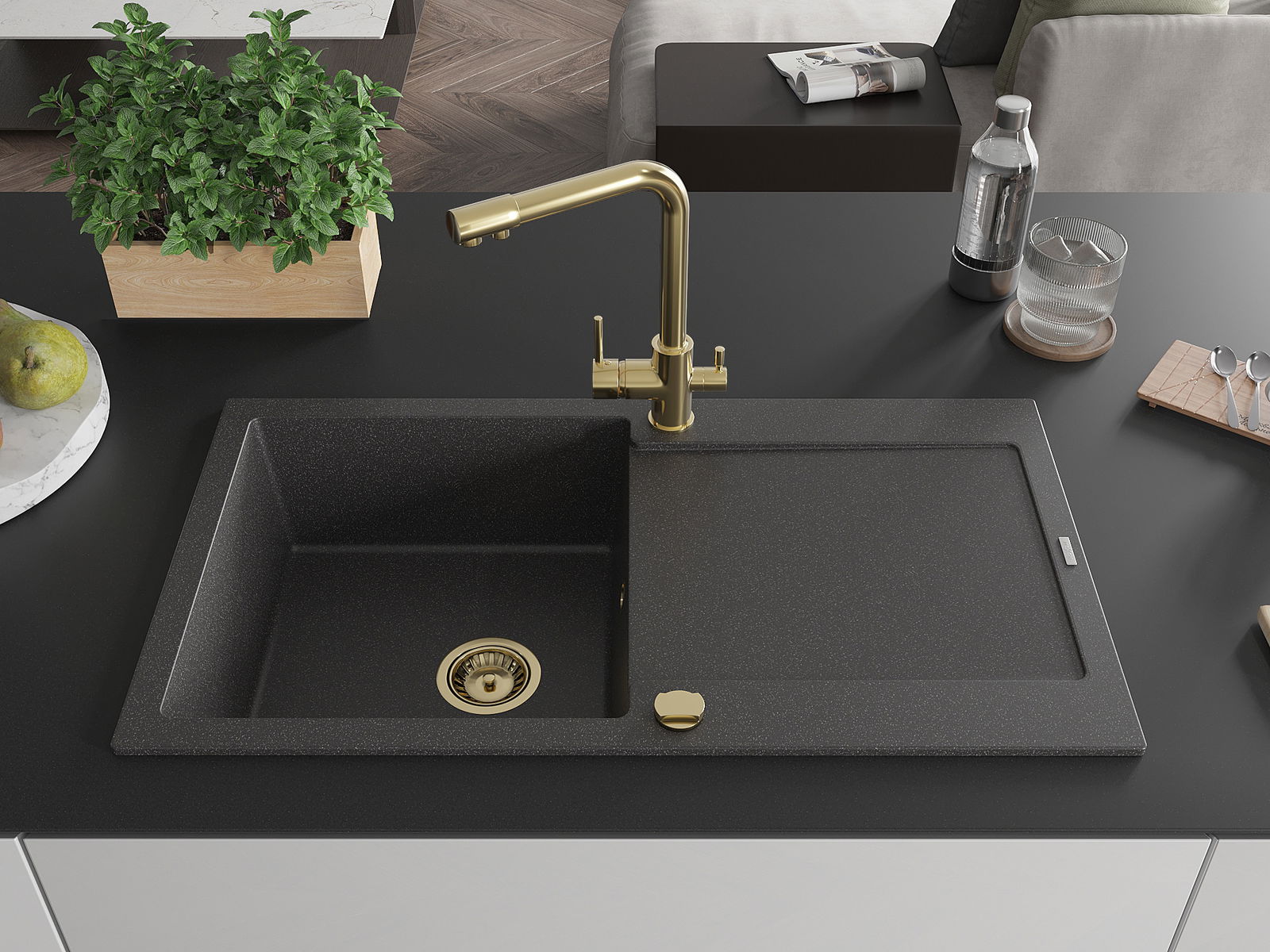 The sink is made from high-quality granite. It serves as an elegant and, above all, practical addition to any kitchen, regardless of its style. The high quality and durability of granite ensure many years of use.