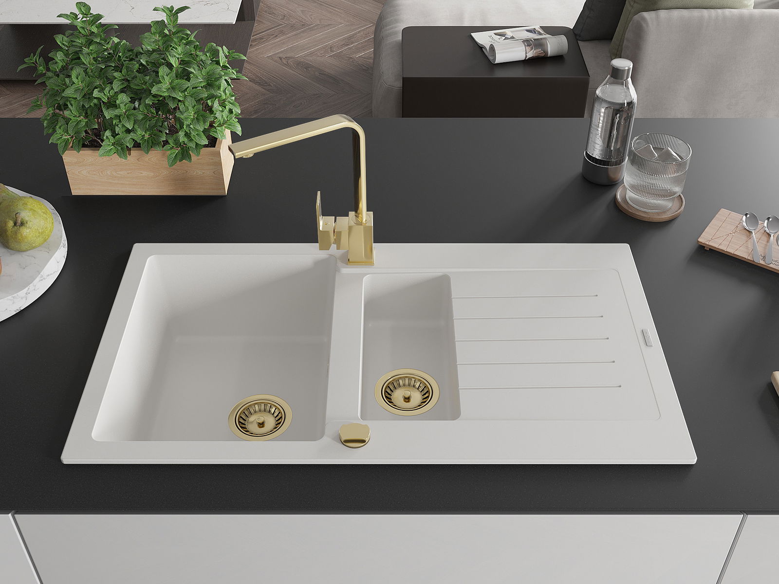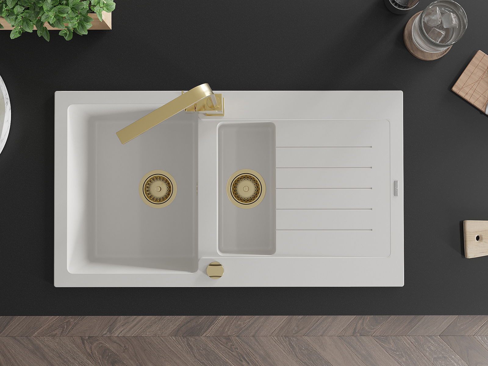 Choosing a sink with a draining board is a practical solution that allows you to set aside washed dishes or vegetables and fruits. The draining board makes daily cooking easier and helps maintain order in the kitchen.