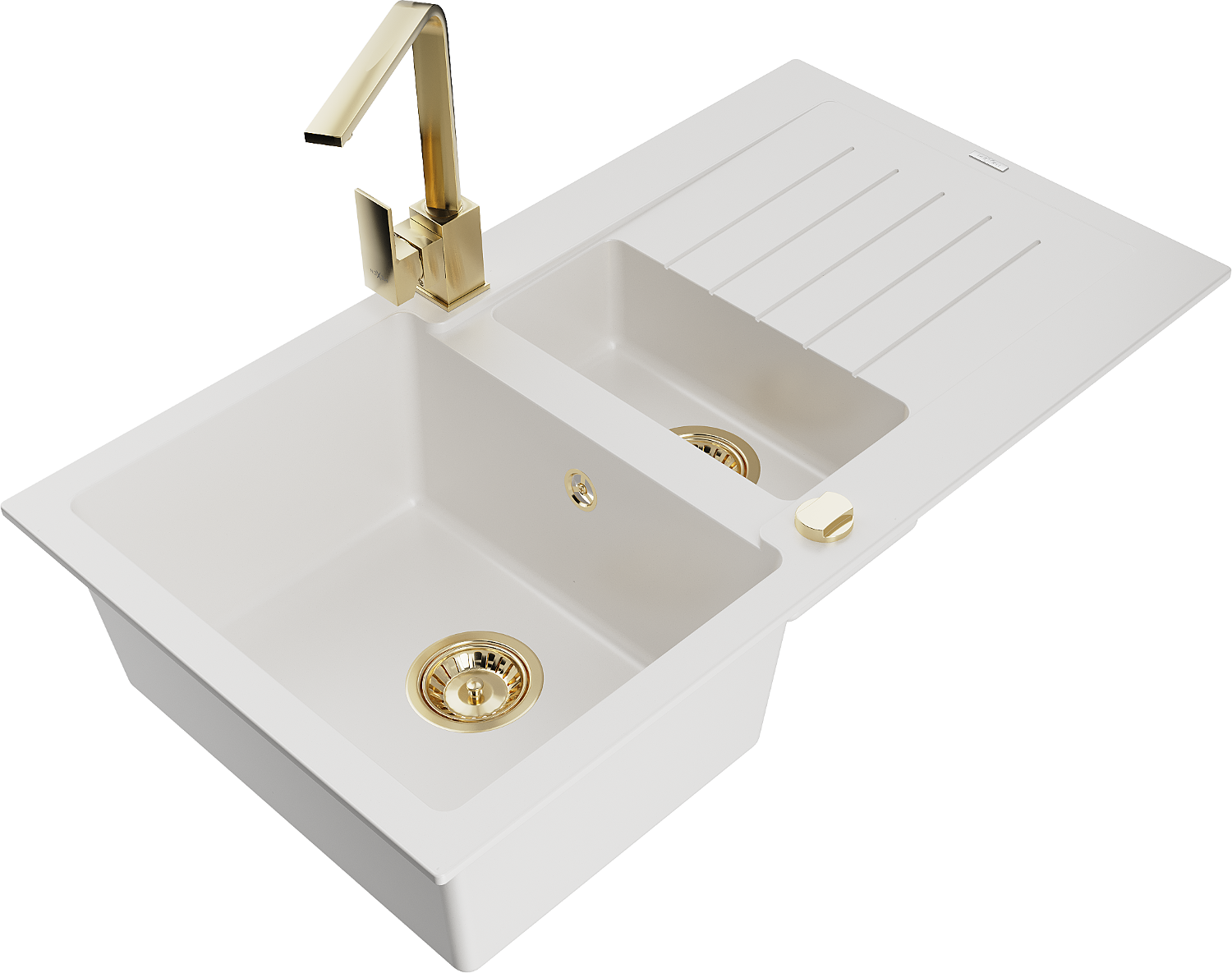 Mexen Matias granite sink 1.5-bowl with drainer and Rita kitchen tap, white - 6502-20-670300-50