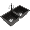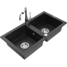 Mexen Mario granite sink 2-bowl with Carla kitchen tap, black - 6504-77-670700-00
