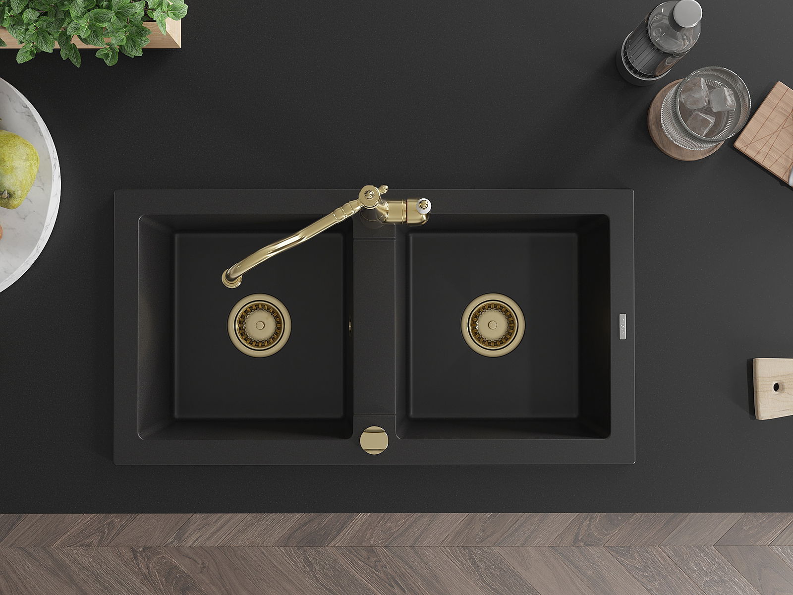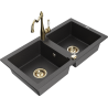 Mexen Mario granite sink 2-chamber with Carla kitchen tap, black - 6504-77-670700-50