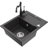 Mexen Enzo 1-compartment granite sink with a drip tray and kitchen mixer tap Carla, Black - 6506-77-670700-70