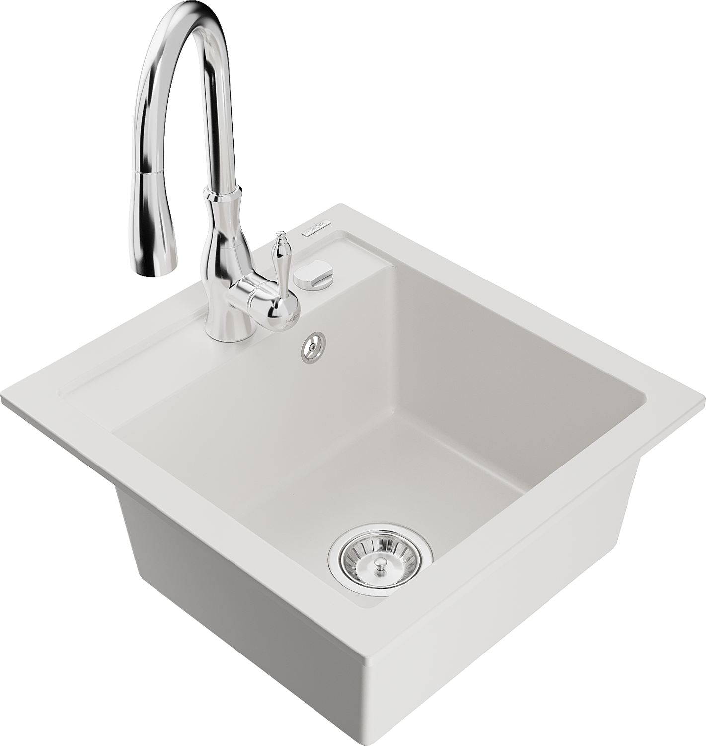 Mexen Vito Granite Kitchen Sink 1-Bowl with Savita Kitchen Tap, White - 6503-20-672601-00
