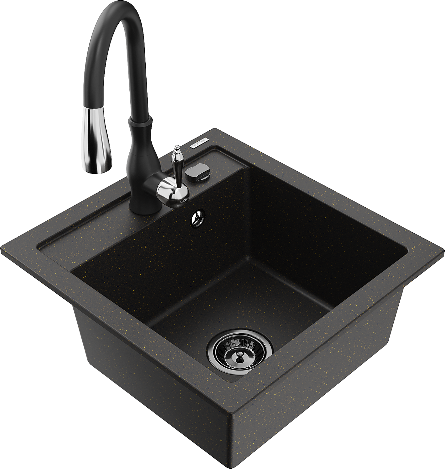 Mexen Vito 1-bowl granite sink with Savita kitchen tap, black/gold metallic - 6503-75-672601-70-B