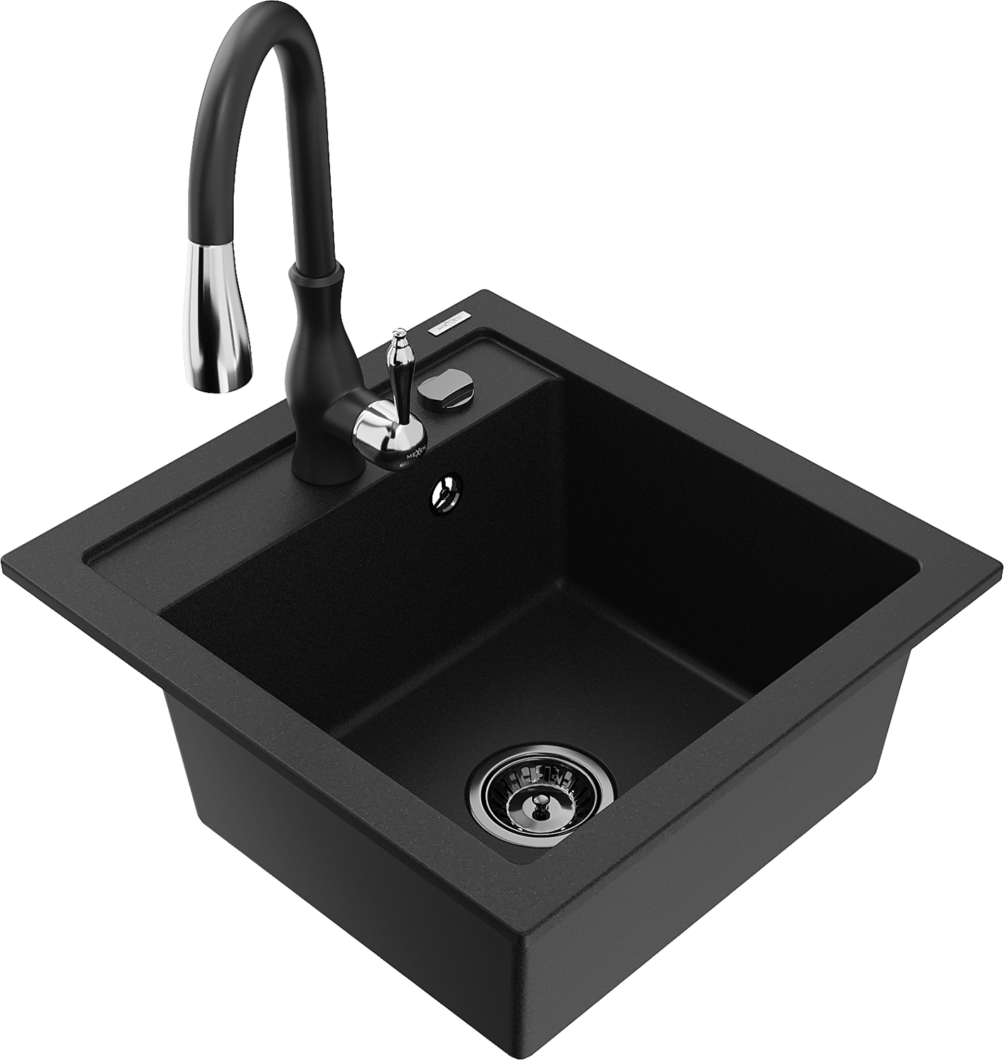 Mexen Vito granite sink 1-bowl with Savita kitchen tap, black - 6503-77-672601-70-B