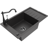 Mexen Elias 1-bowl granite sink with drainer and Carla kitchen tap, grey - 6511-71-670700-70-B