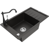 Mexen Elias granite kitchen sink 1-bowl with drainer and Carla kitchen tap, black/silver metallic - 6511-73-670700-70