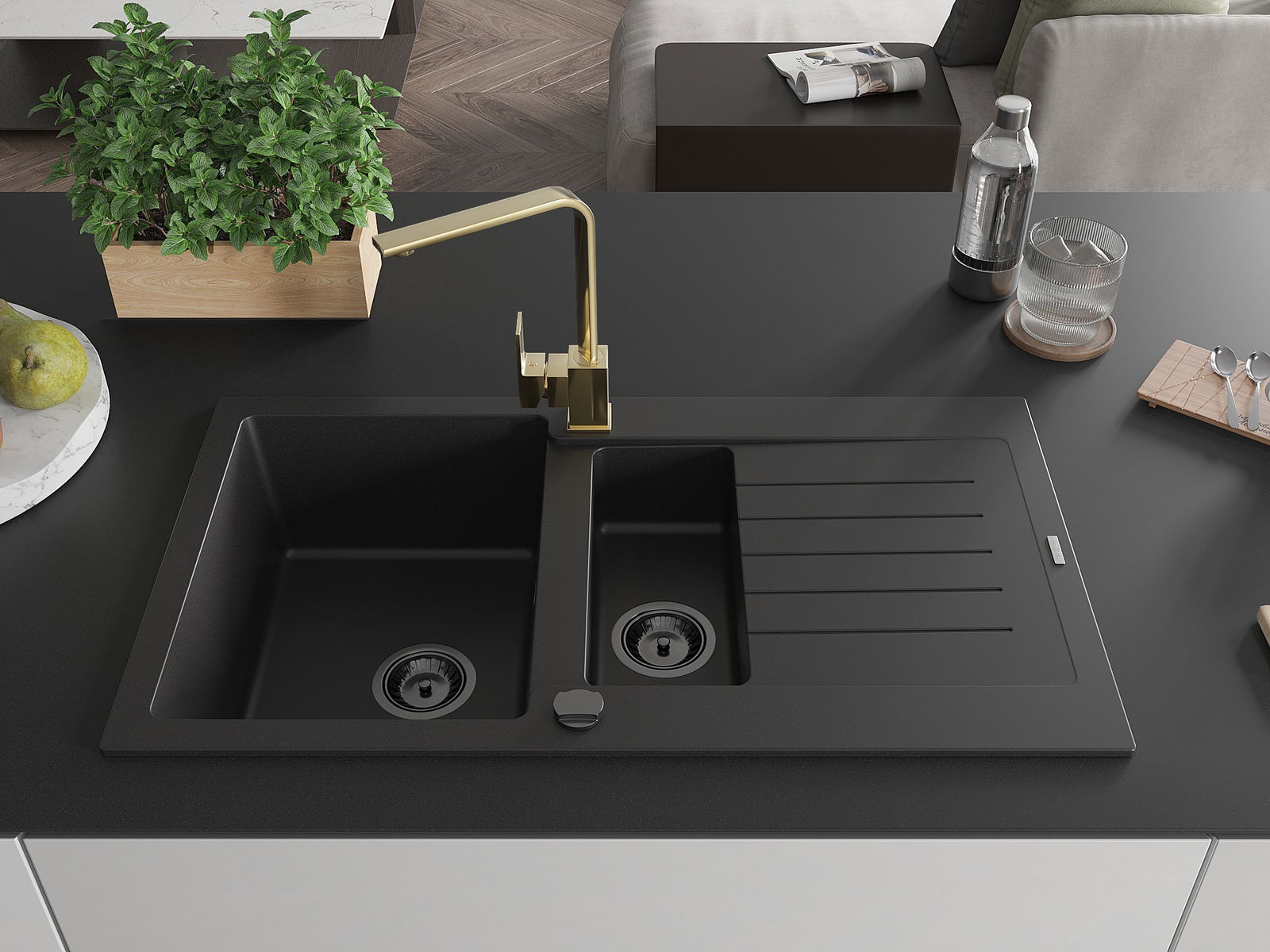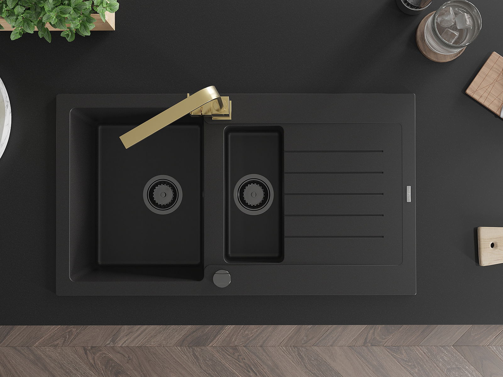 Choosing a sink with a draining board is a practical solution that allows you to set aside washed dishes or vegetables and fruits. The draining board makes daily cooking easier and helps maintain order in the kitchen.