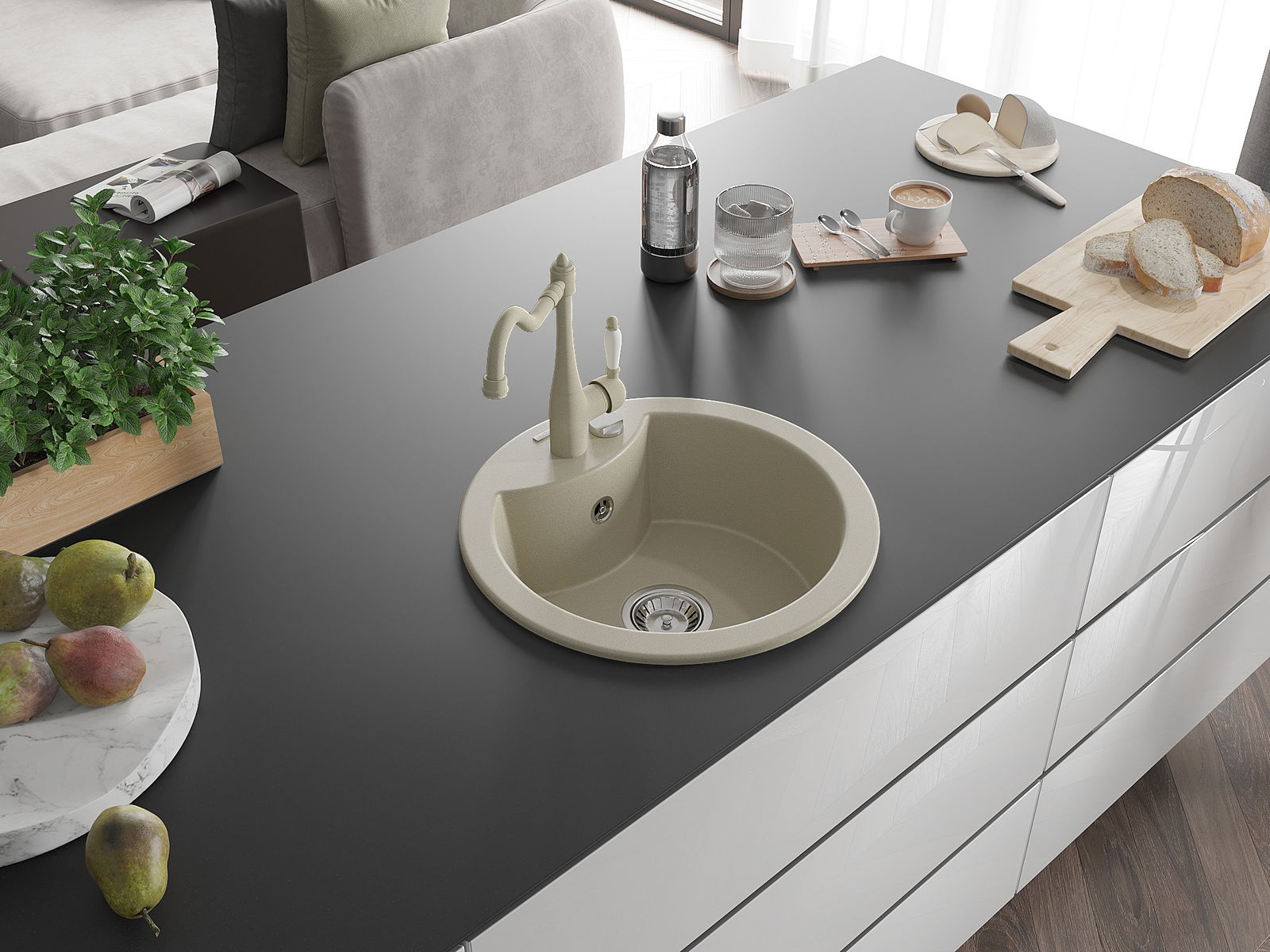 The sink is made from high-quality granite. It serves as an elegant and, above all, practical addition to any kitchen, regardless of its style. The high quality and durability of granite ensure many years of use.
