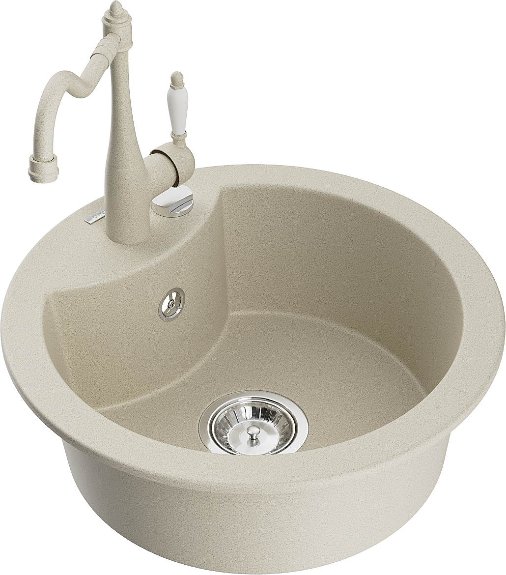 Mexen Diego 1-bowl granite sink with Carla kitchen tap, beige - 6512-69-670700-69