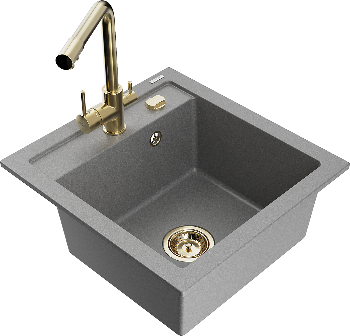Mexen Vito granite kitchen sink 1-bowl with Duero kitchen tap, grey - 6503-71-671600-50