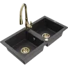 Mexen Mario granite double-bowl sink with Savita kitchen tap, black/silver metallic - 6504-73-672601-50