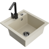 The surface of the sink is resistant to stains and discolouration, making it easy to maintain cleanliness and retain its colour for a long time of use. An aesthetic and practical addition to any kitchen.