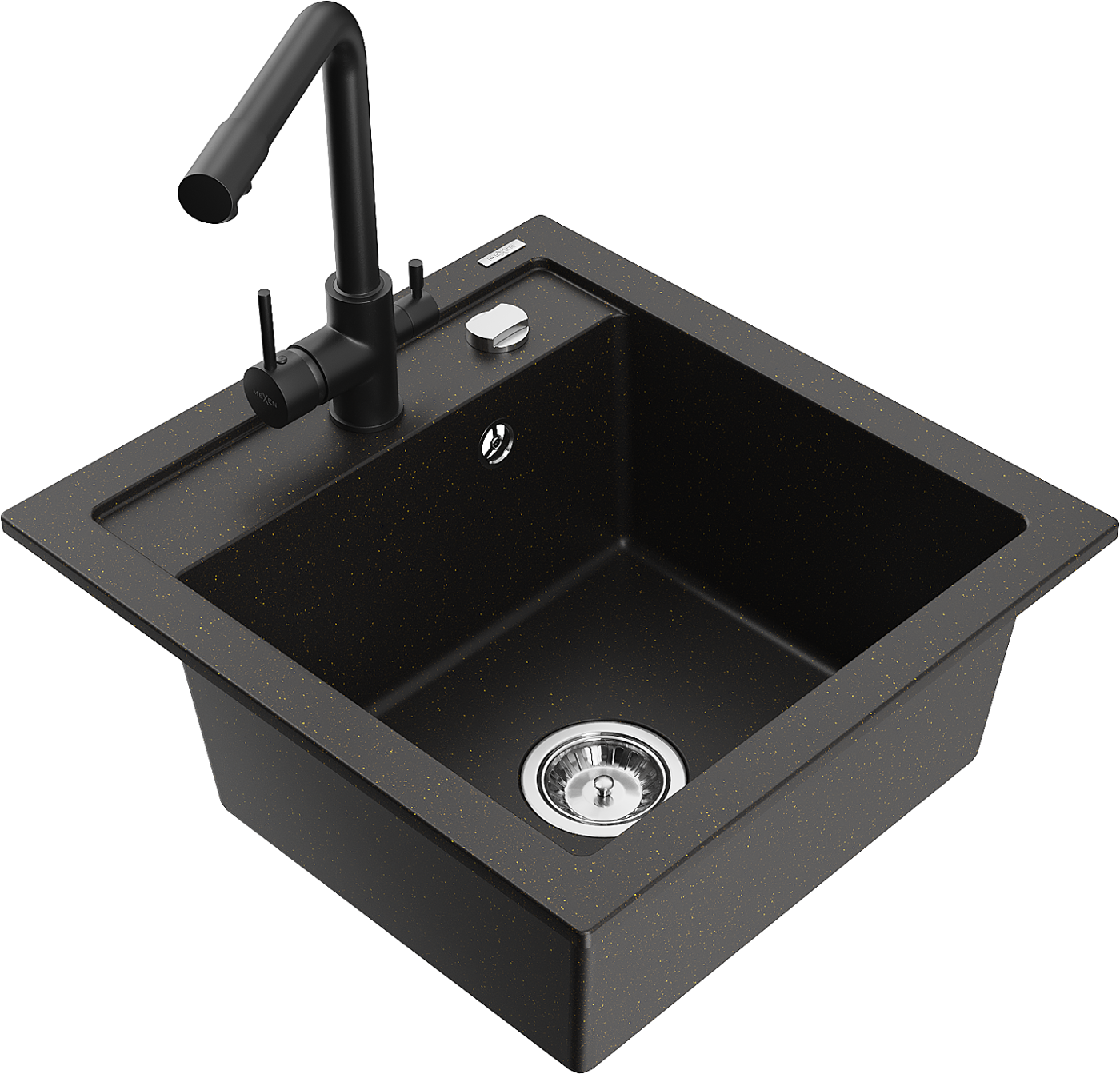 Mexen Vito 1-bowl granite sink with Duero kitchen tap, black/gold metallic - 6503-75-671600-70