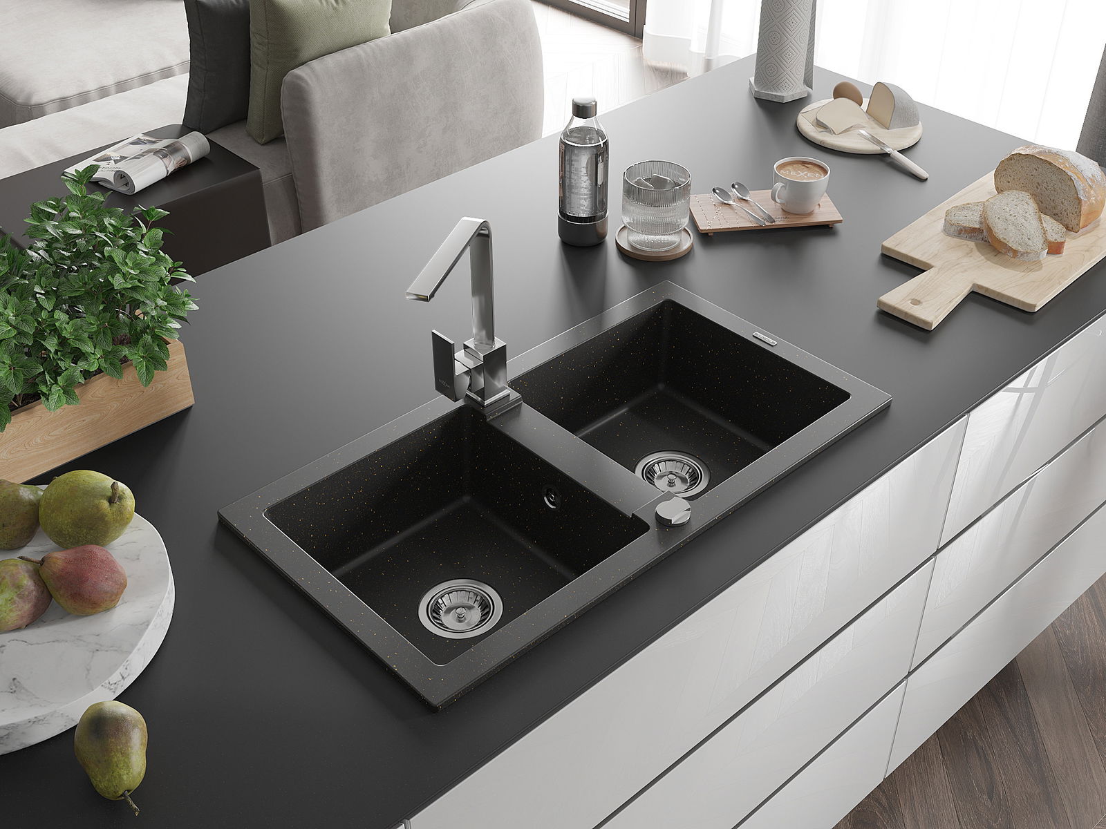 The sink is made from high-quality granite. It serves as an elegant and, above all, practical addition to any kitchen, regardless of its style. The high quality and durability of granite ensure many years of use.