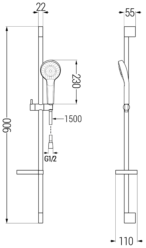 A 1/2" threaded connection is a commonly used standard element in internal water installations. This makes connecting and installing subsequent shower elements much easier and more intuitive.