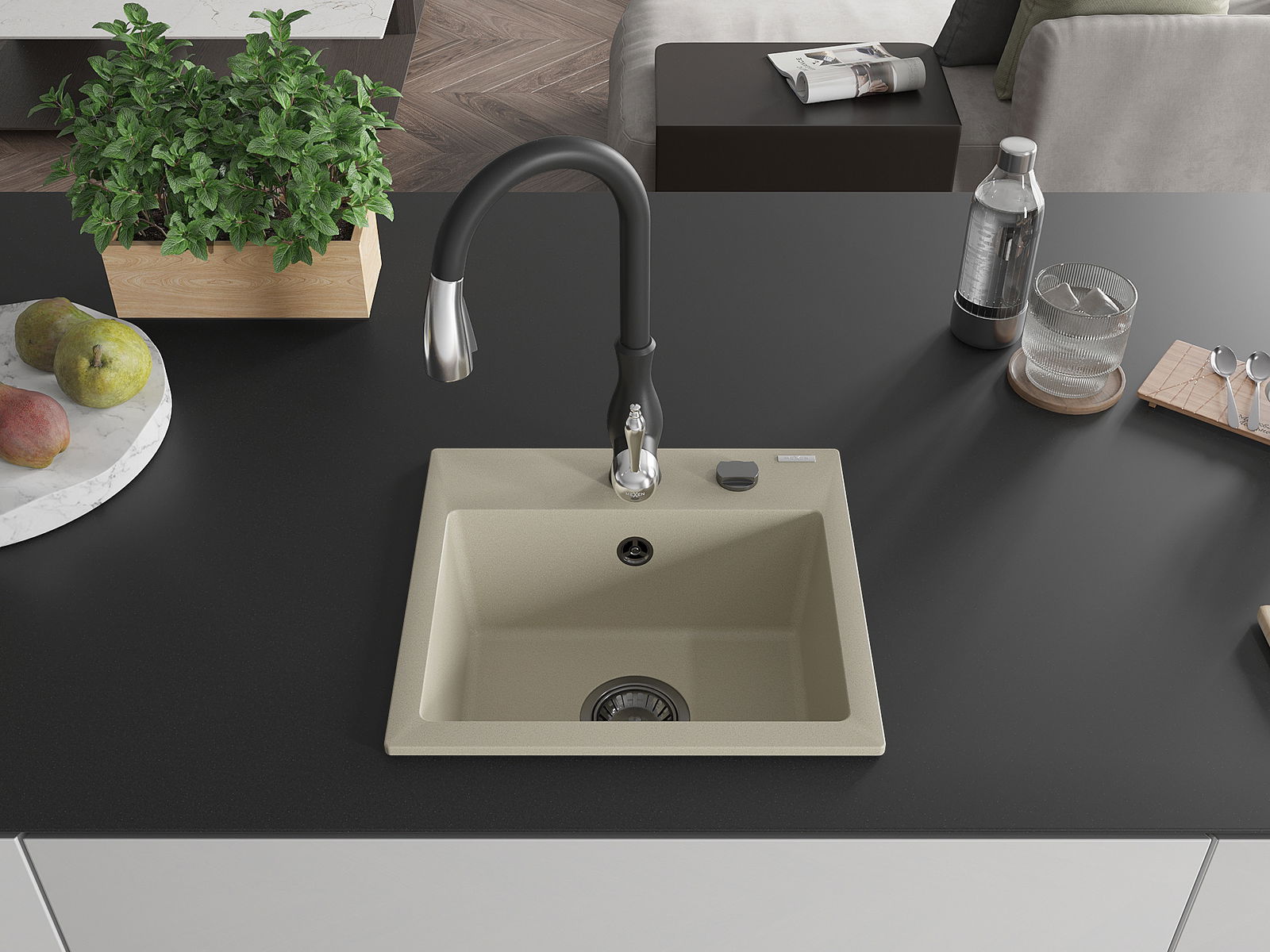 The surface of the sink is resistant to stains and discolouration, making it easy to maintain cleanliness and retain its colour for a long time of use. An aesthetic and practical addition to any kitchen.