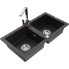 Mexen Mario granite double bowl sink with Rita kitchen tap, black - 6504-77-670300-00