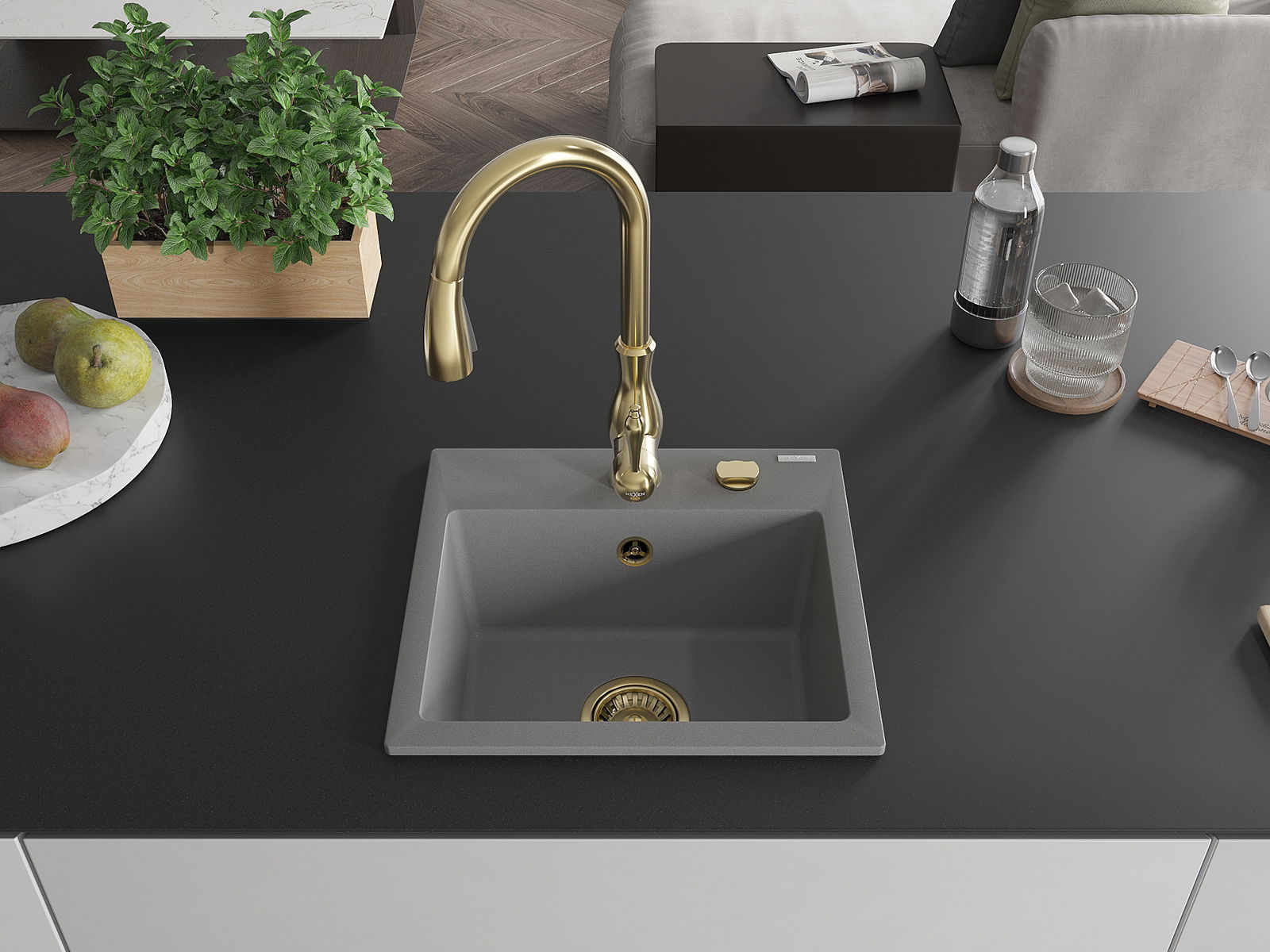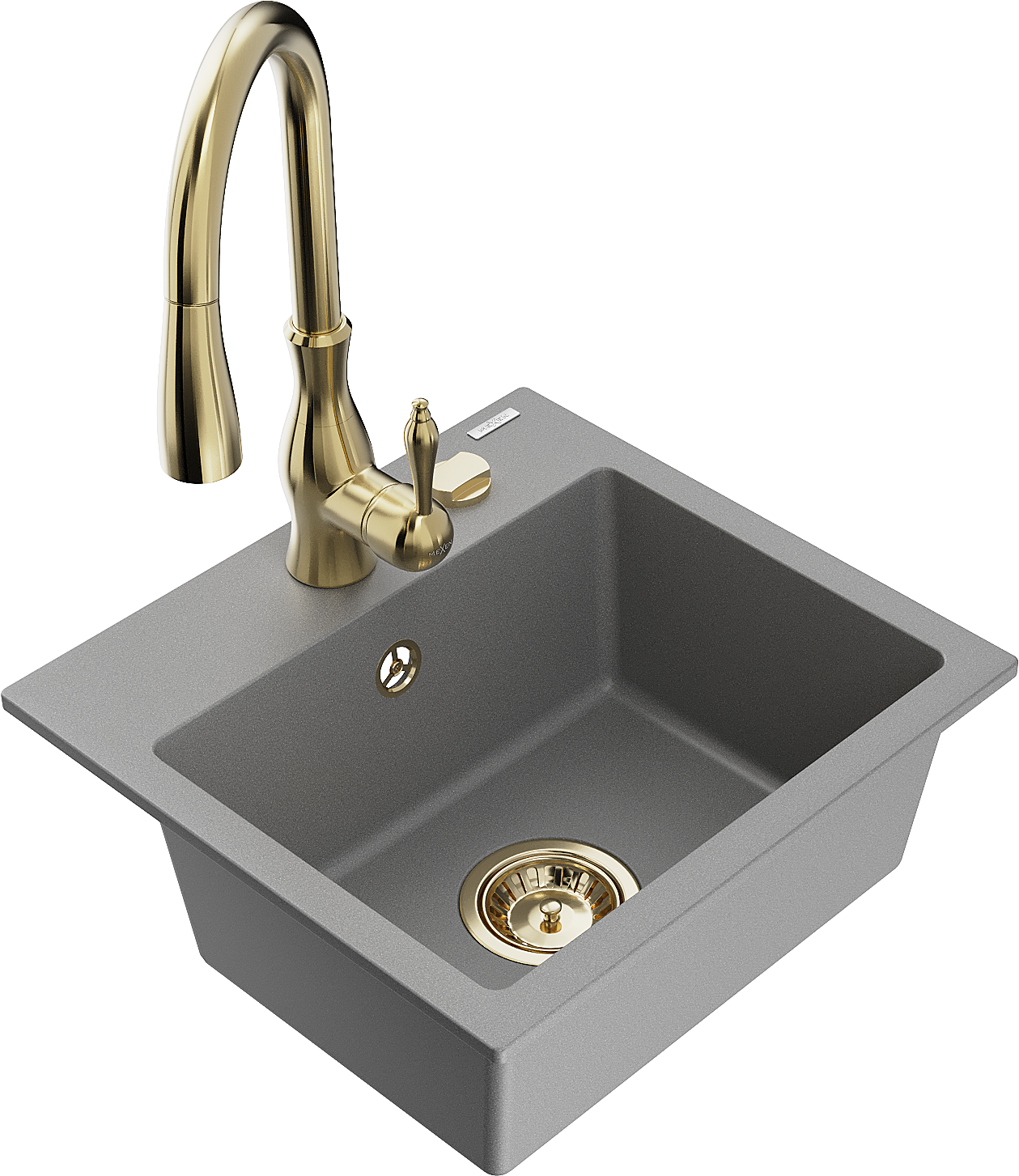 Mexen Milo granite sink 1-bowl with Savita kitchen tap, grey - 6505-71-672601-50