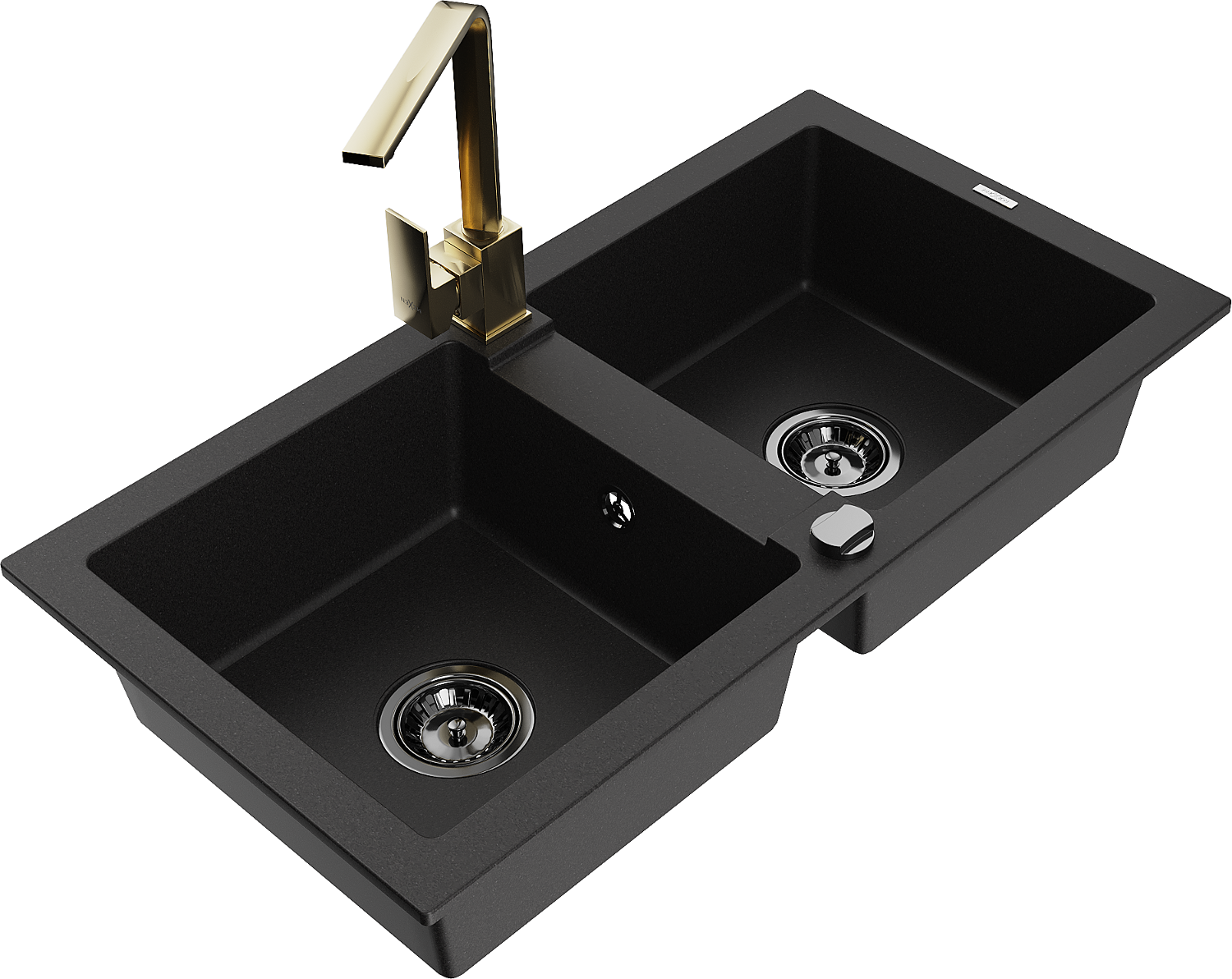Mexen Mario granite sink with 2 compartments and Rita kitchen tap, black - 6504-77-670300-50-B