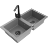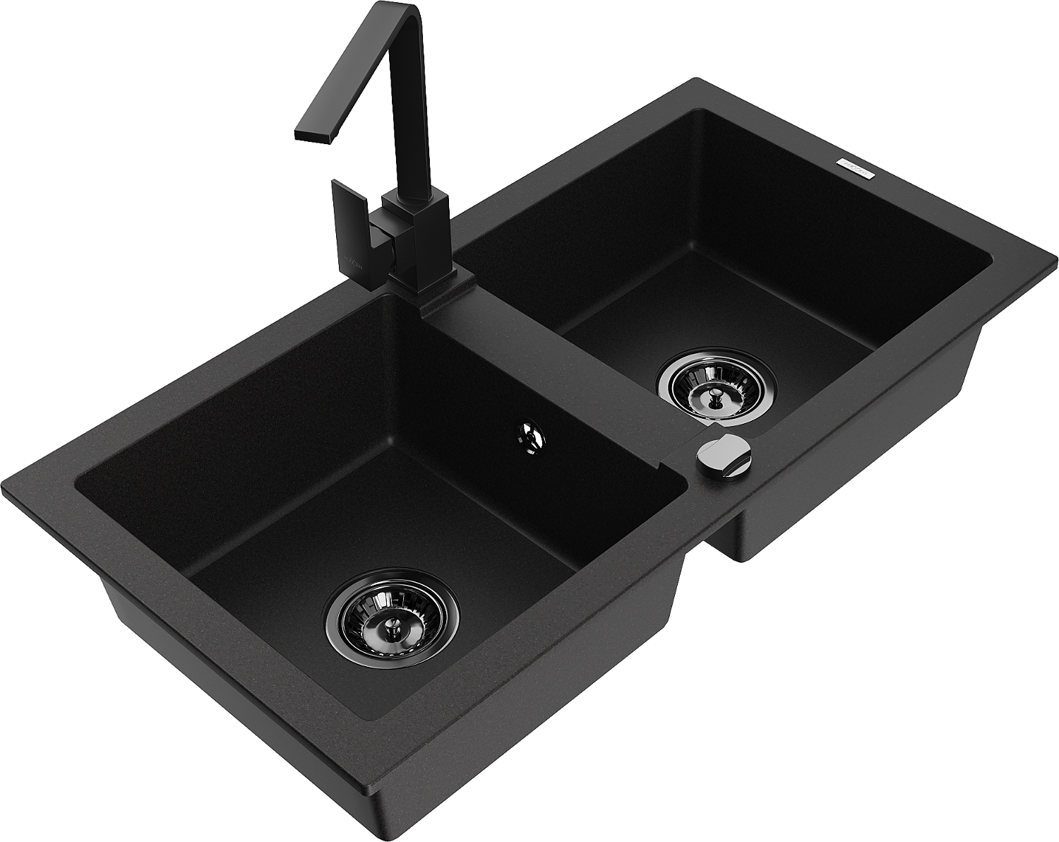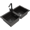 Mexen Mario Granite Sink 2-Bowl with Rita Kitchen Tap, Black - 6504-77-670300-70-B