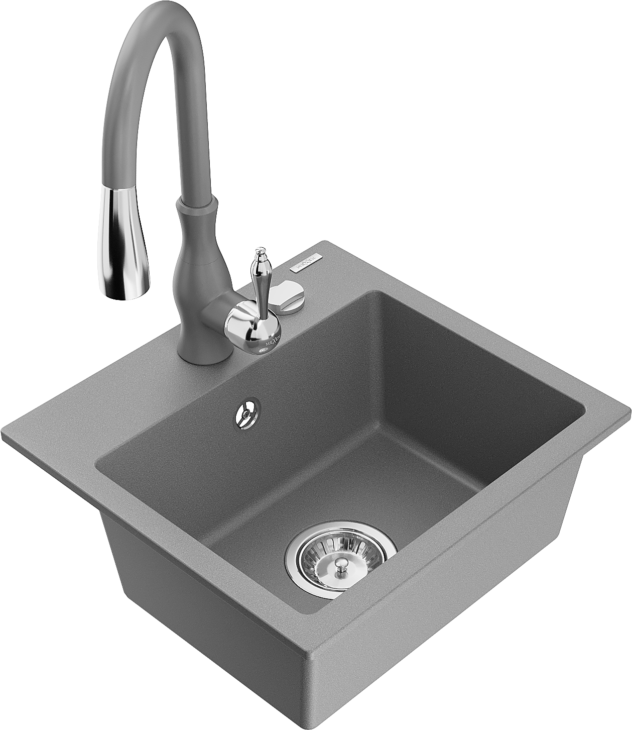Mexen Milo 1-bowl granite kitchen sink with Savita tap, grey - 6505-71-672601-71