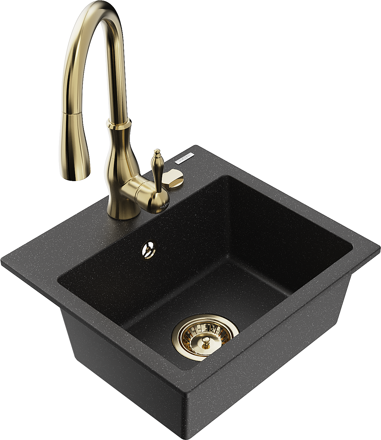 Mexen Milo Granite Sink 1-Bowl with Savita Kitchen Tap, Black/Silver Metallic- 6505-73-672601-50