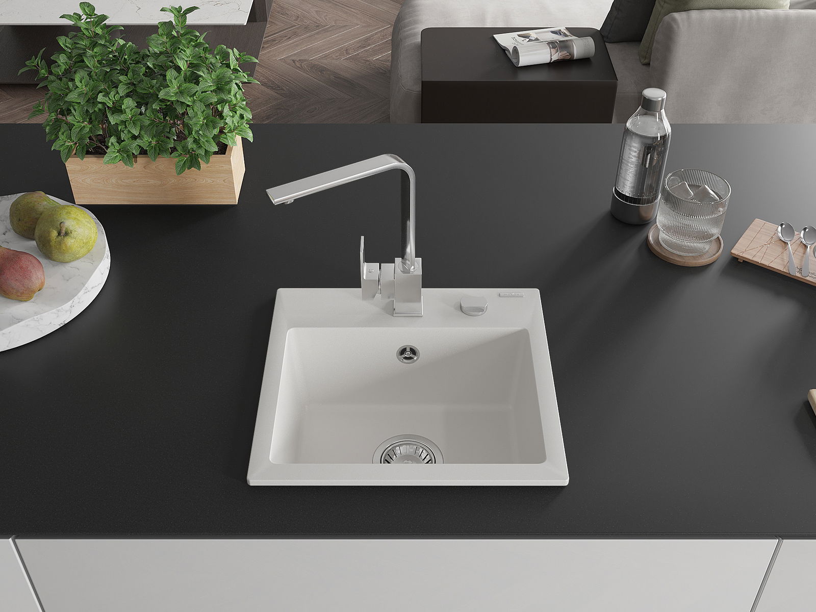 The surface of the sink is resistant to stains and discolouration, making it easy to maintain cleanliness and retain its colour for a long time of use. An aesthetic and practical addition to any kitchen.