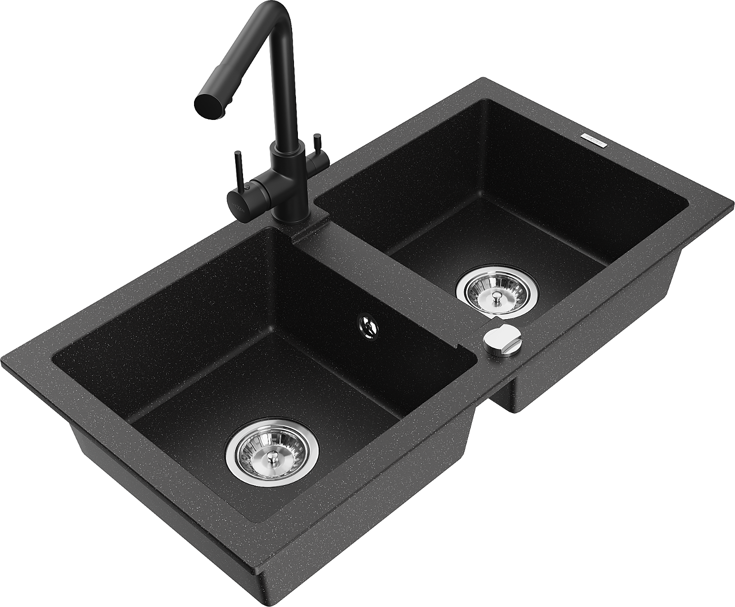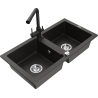 Mexen Mario 2-bowl granite kitchen sink with Duero kitchen tap, black/silver metallic - 6504-73-671600-70