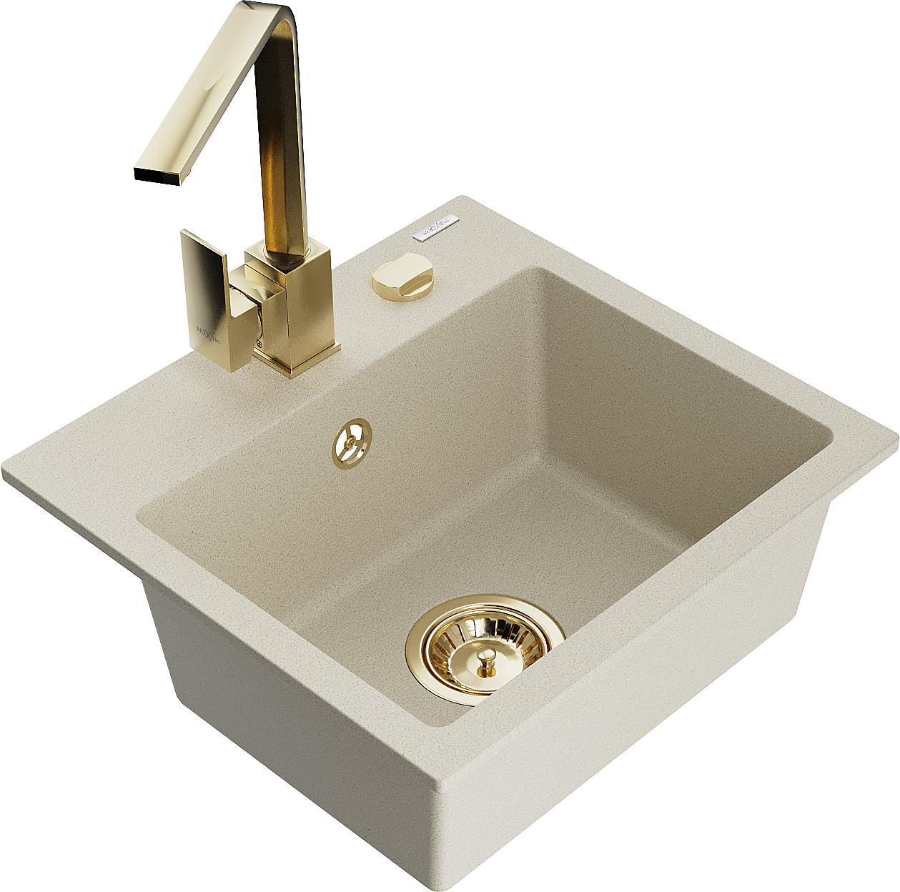 Mexen Milo Granite Kitchen Sink 1-Bowl with Rita Tap, Beige - 6505-69-670300-50