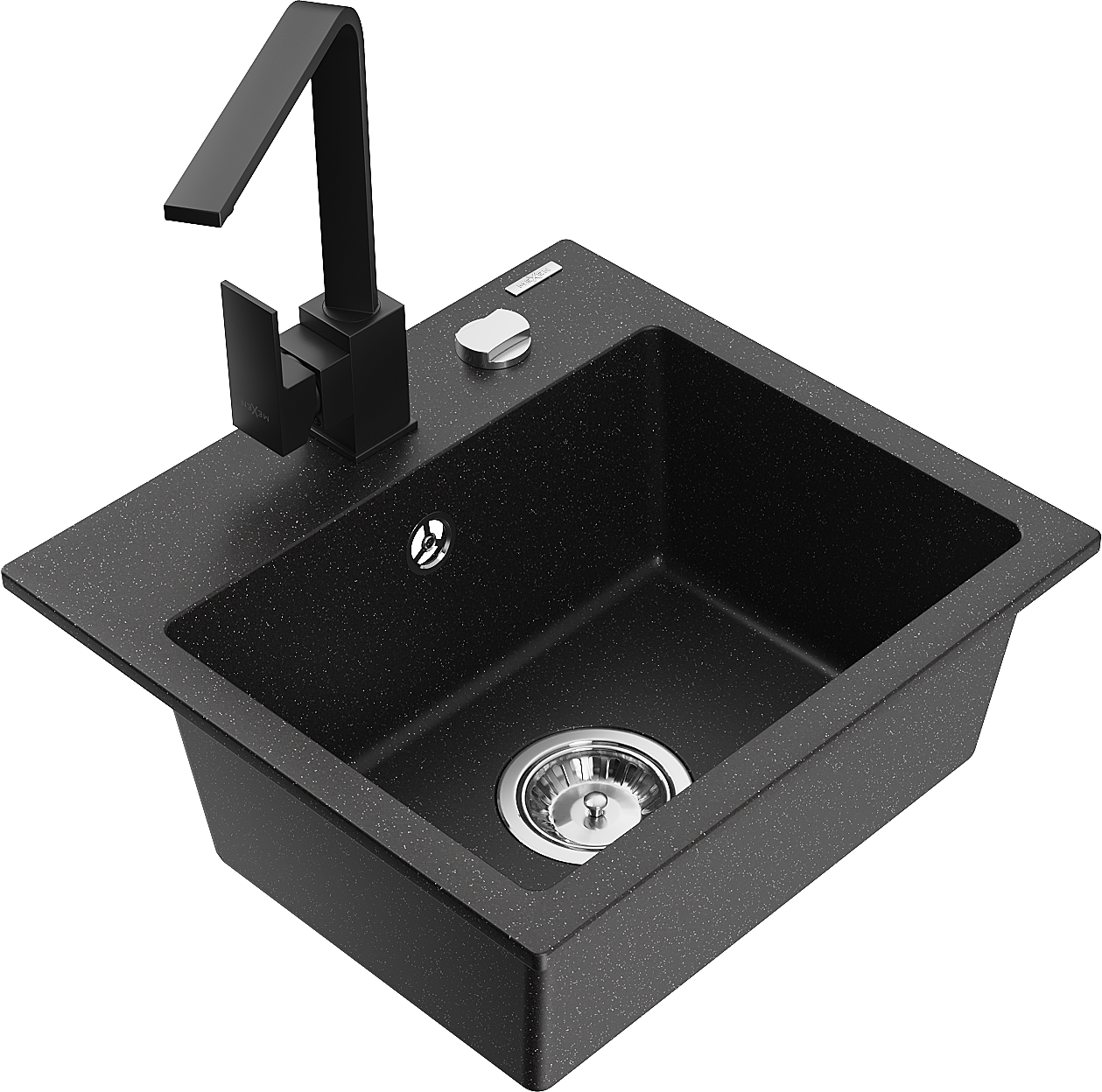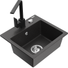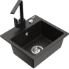 Mexen Milo 1-bowl granite sink with Rita kitchen tap, black/silver metallic - 6505-73-670300-70