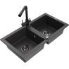 Mexen Mario granite sink 2-compartment with Duero kitchen tap, black - 6504-77-671600-70-B