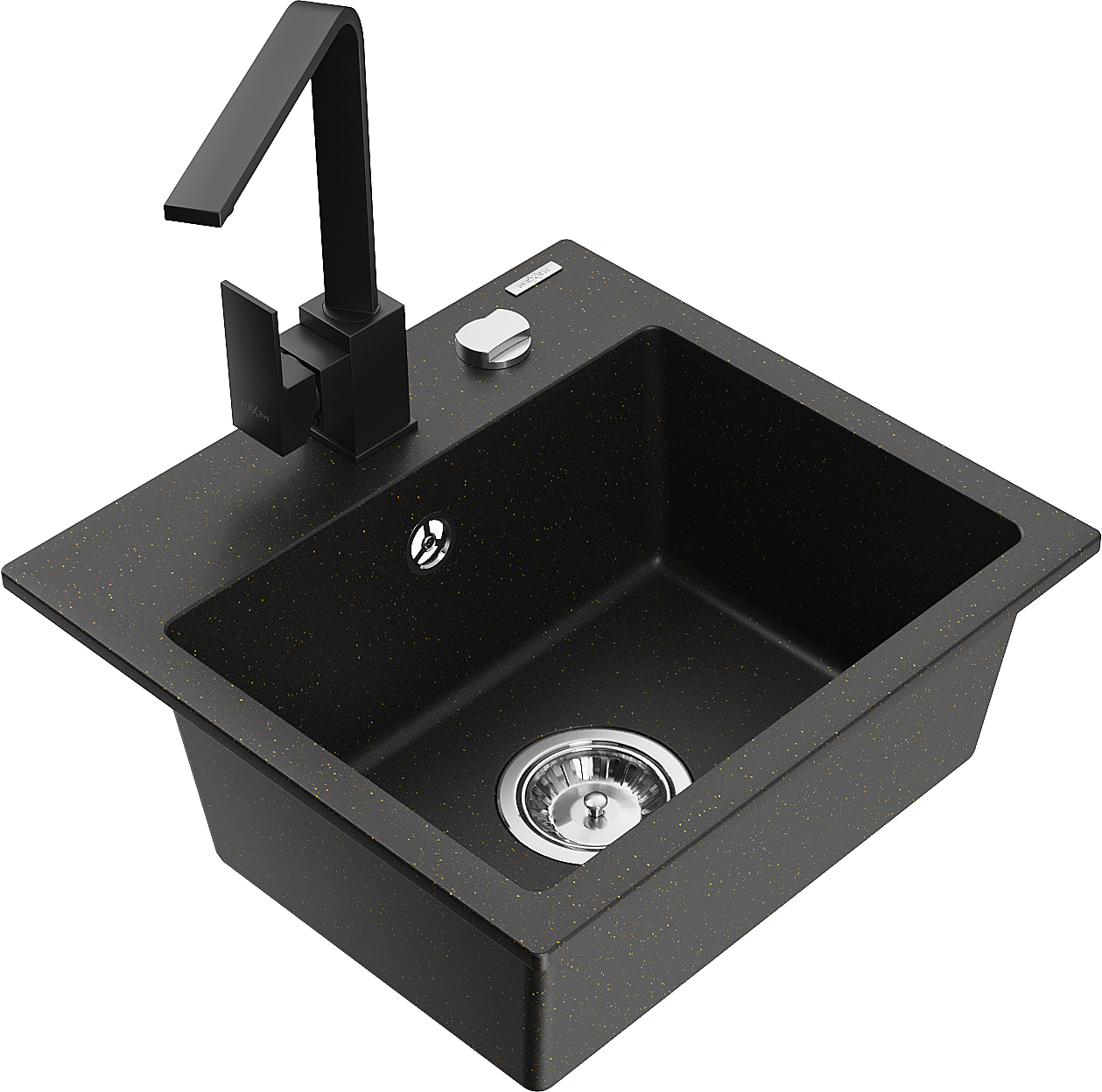 Mexen Milo 1-bowl granite kitchen sink with Rita tap, black/gold metallic - 6505-75-670300-70