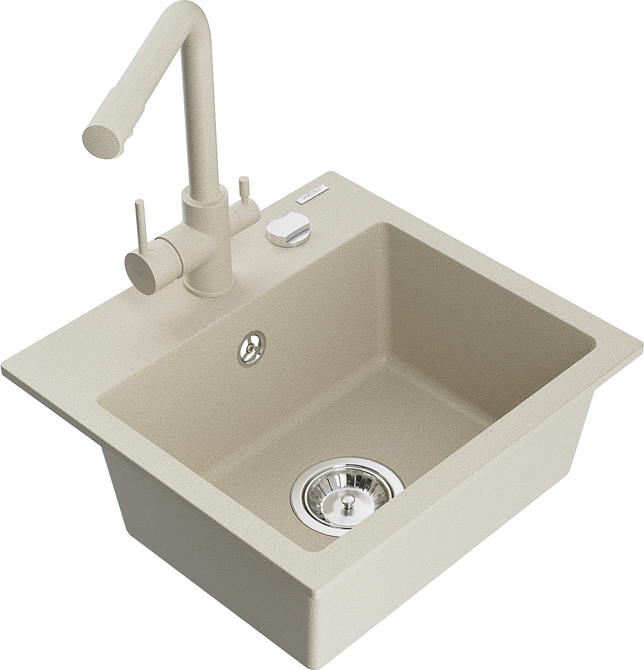 The surface of the sink is resistant to stains and discolouration, making it easy to maintain cleanliness and retain its colour for a long time of use. An aesthetic and practical addition to any kitchen.