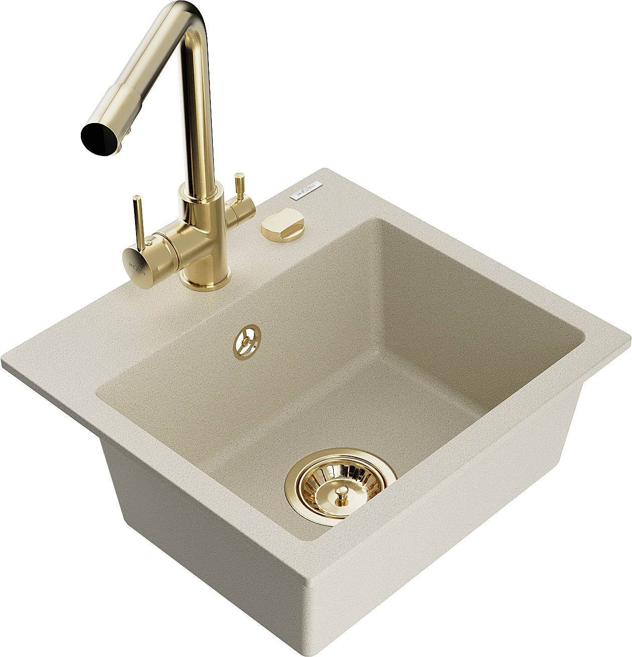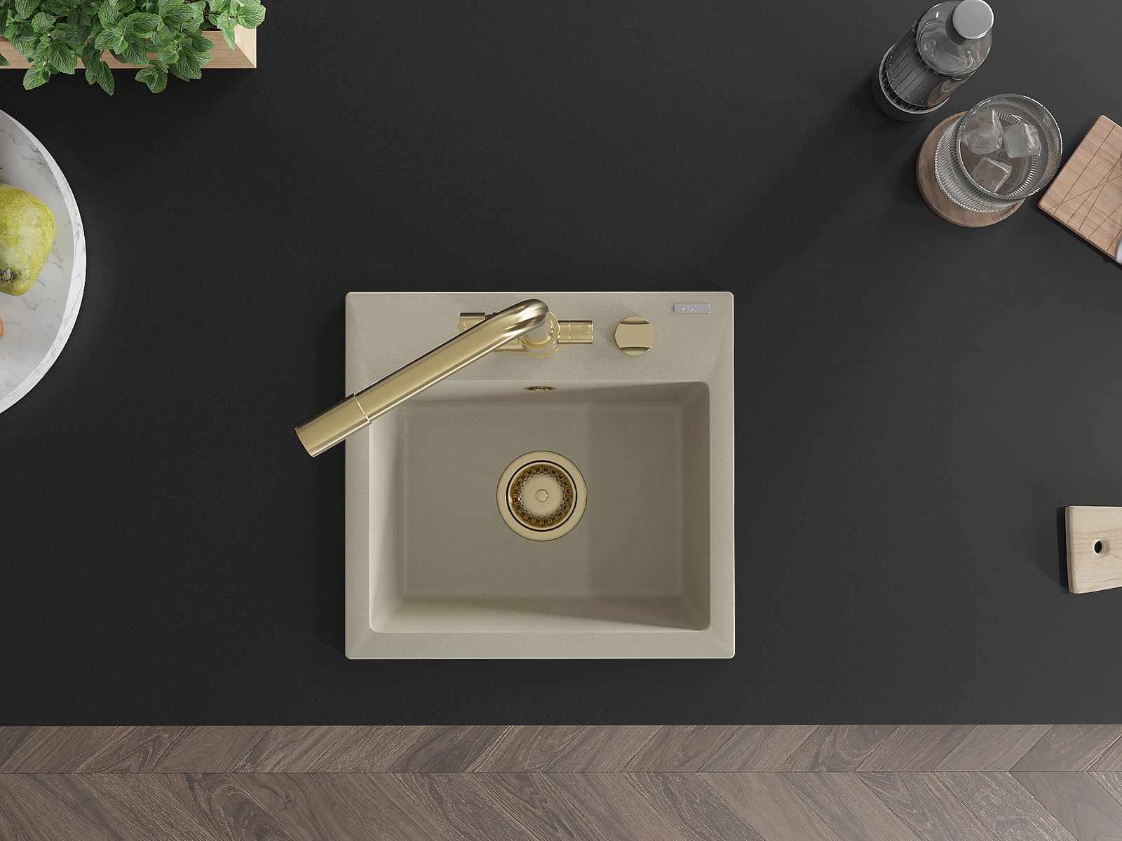 Mexen Milo granite sink 1-bowl with Duero kitchen tap, beige - 6505-69-671600-50
