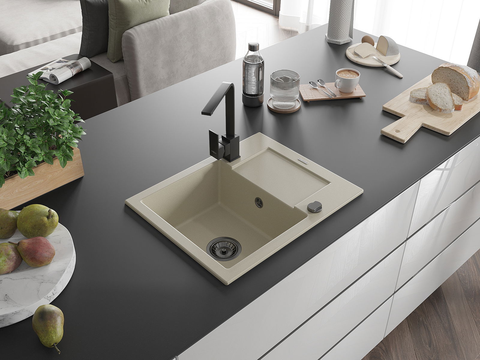 The sink is made from high-quality granite. It serves as an elegant and, above all, practical addition to any kitchen, regardless of its style. The high quality and durability of granite ensure many years of use.