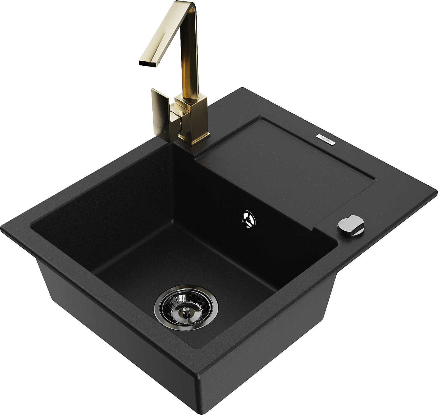 Mexen Enzo granite sink 1-bowl with drainer and Rita kitchen tap, black - 6506-77-670300-50-B
