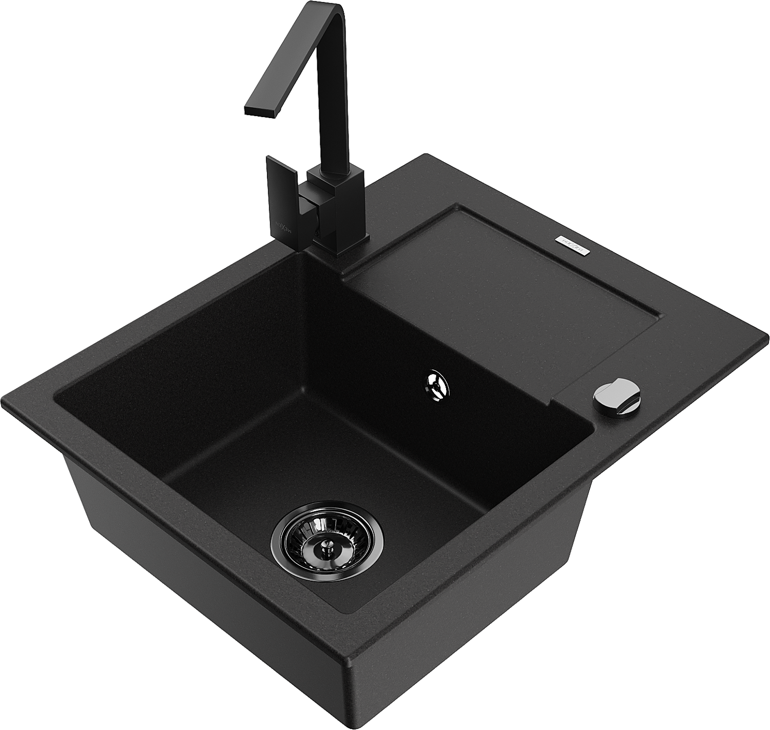 Mexen Enzo 1-bowl granite sink with drainer and Rita kitchen tap, black - 6506-77-670300-70-B