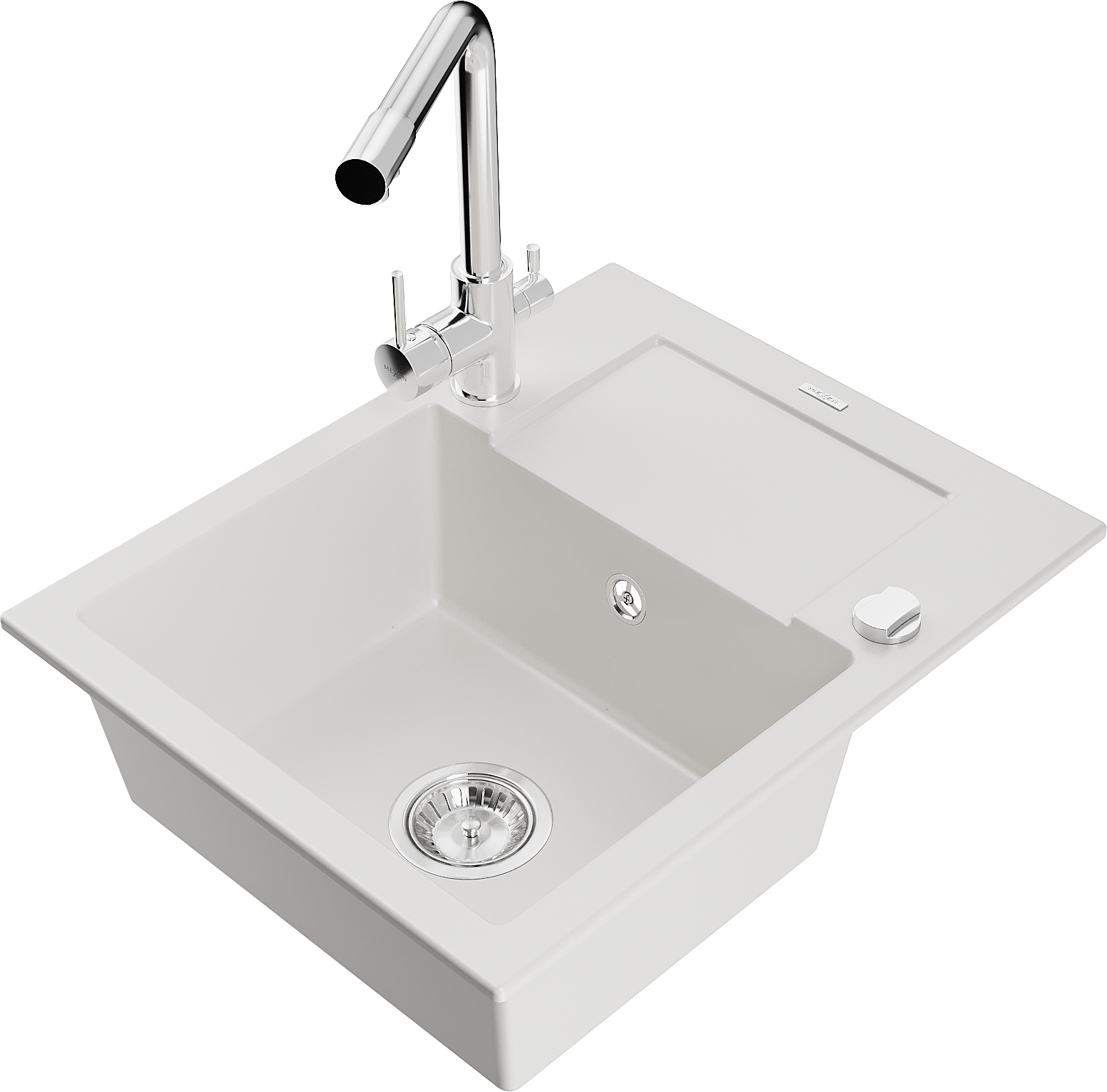 Mexen Enzo granite sink 1-bowl with drainer and Duero kitchen tap, white - 6506-20-671600-00