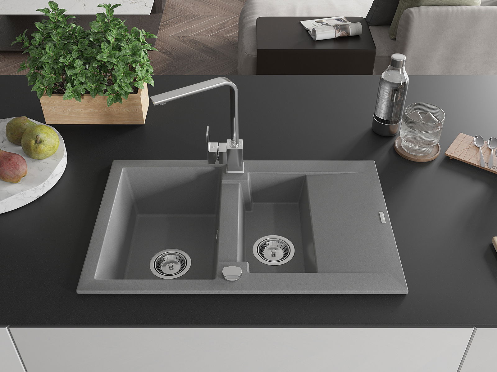The sink is made from high-quality granite. It serves as an elegant and, above all, practical addition to any kitchen, regardless of its style. The high quality and durability of granite ensure many years of use.