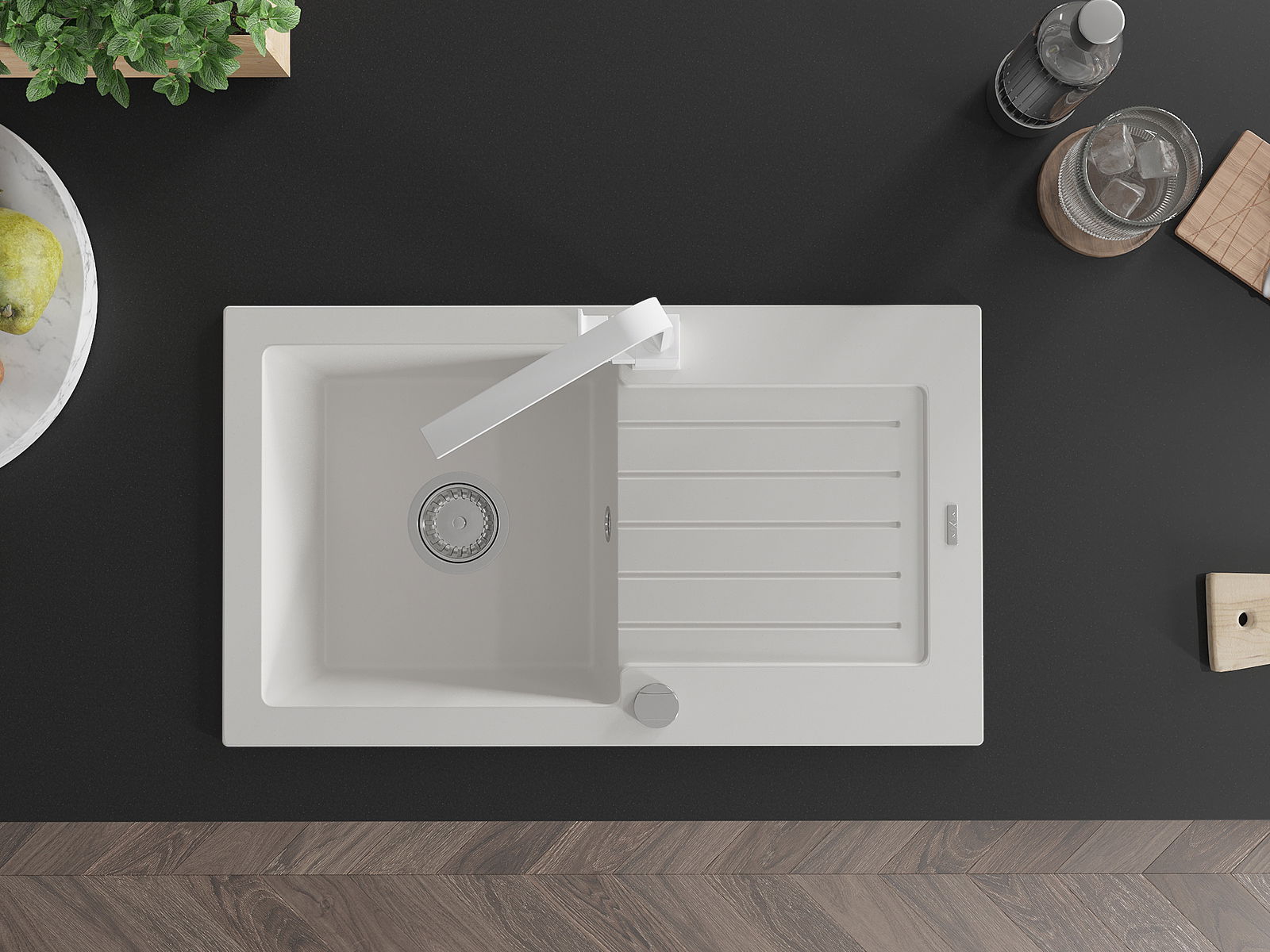 Choosing a sink with a draining board is a practical solution that allows you to set aside washed dishes or vegetables and fruits. The draining board makes daily cooking easier and helps maintain order in the kitchen.