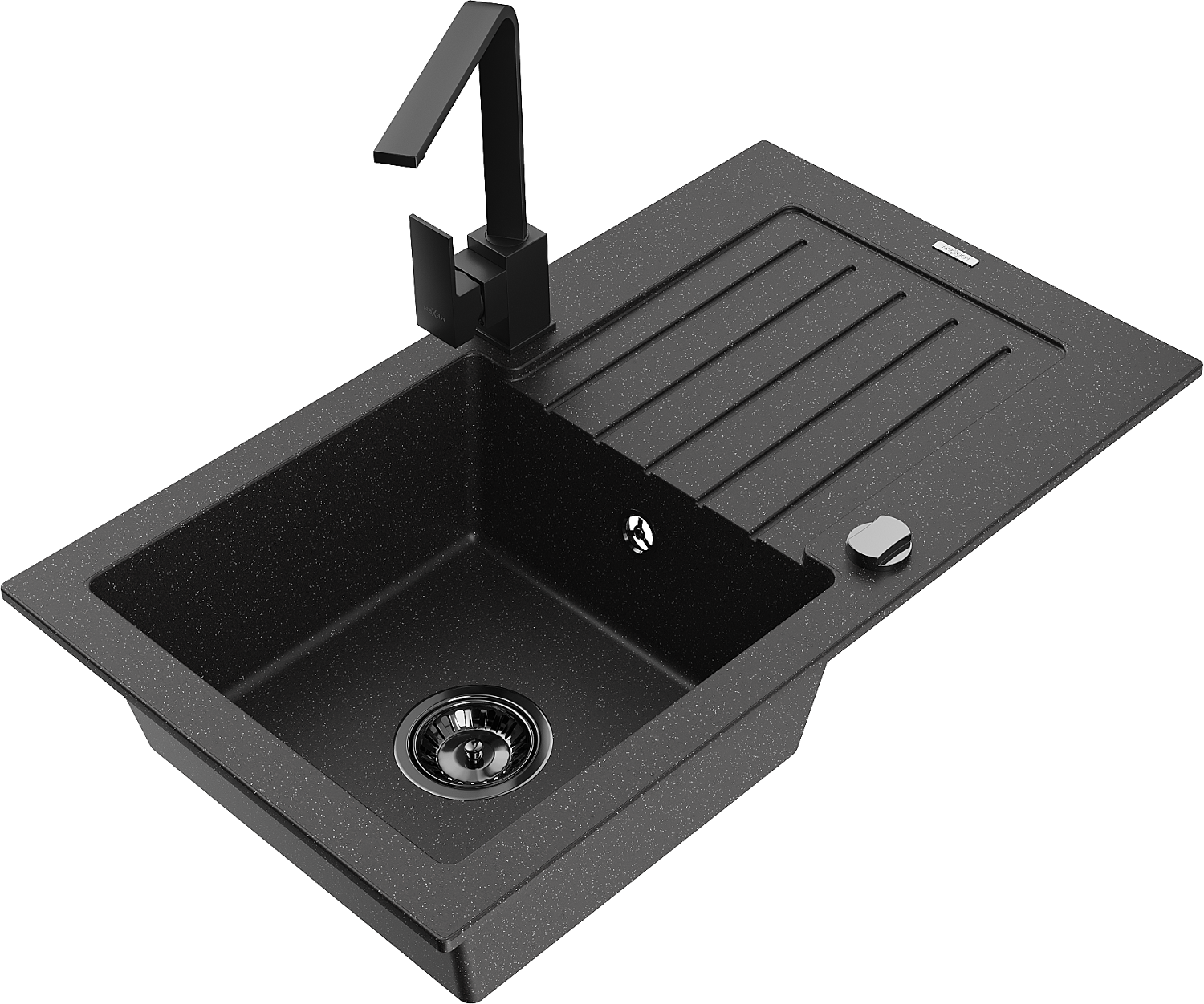 Mexen Pablo granite sink 1-bowl with drainer and Rita kitchen tap, black/silver metallic- 6510-73-670300-70-B