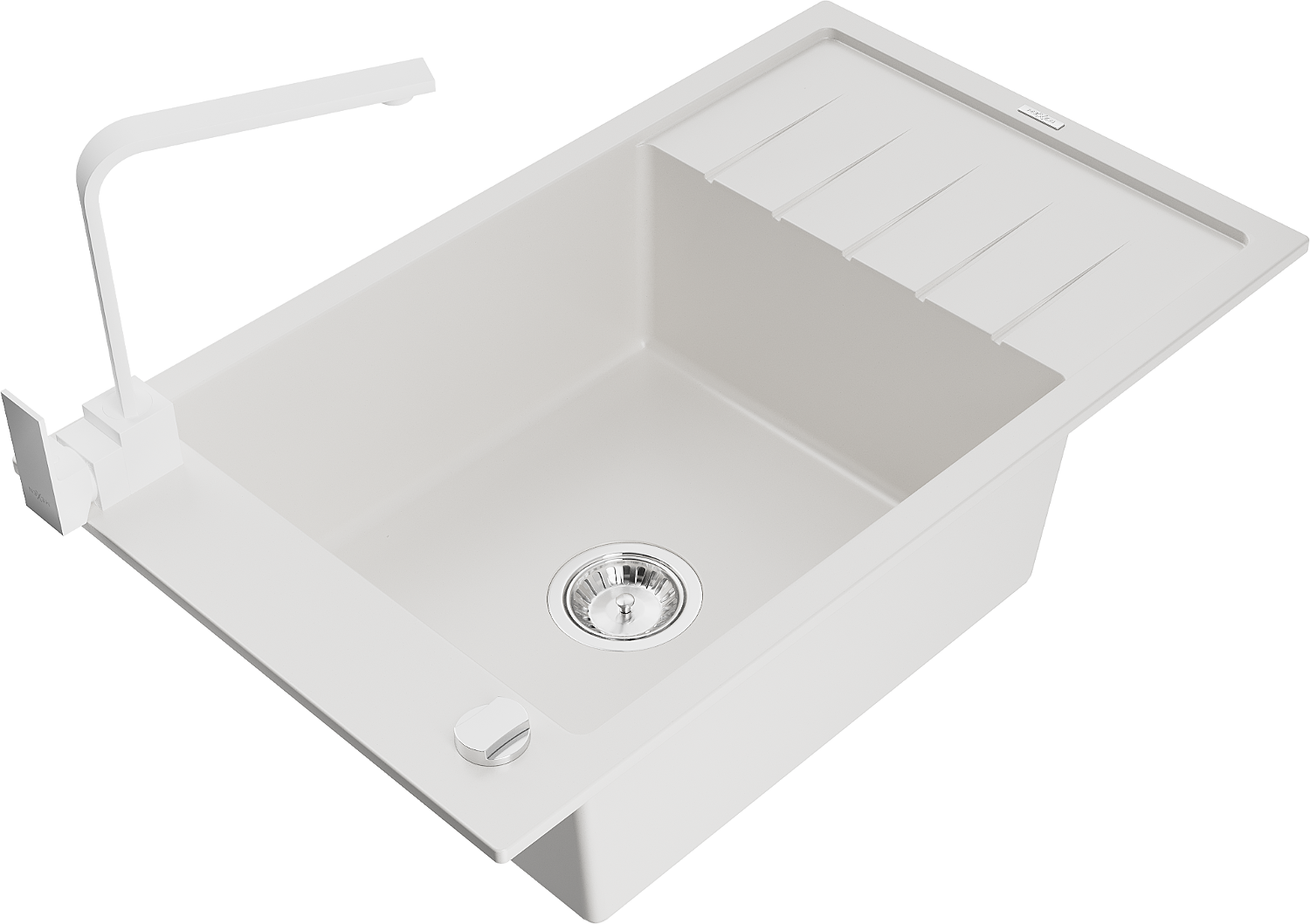 Mexen Elias granite sink 1-bowl with drainer and Rita kitchen tap, white - 6511-20-670300-20