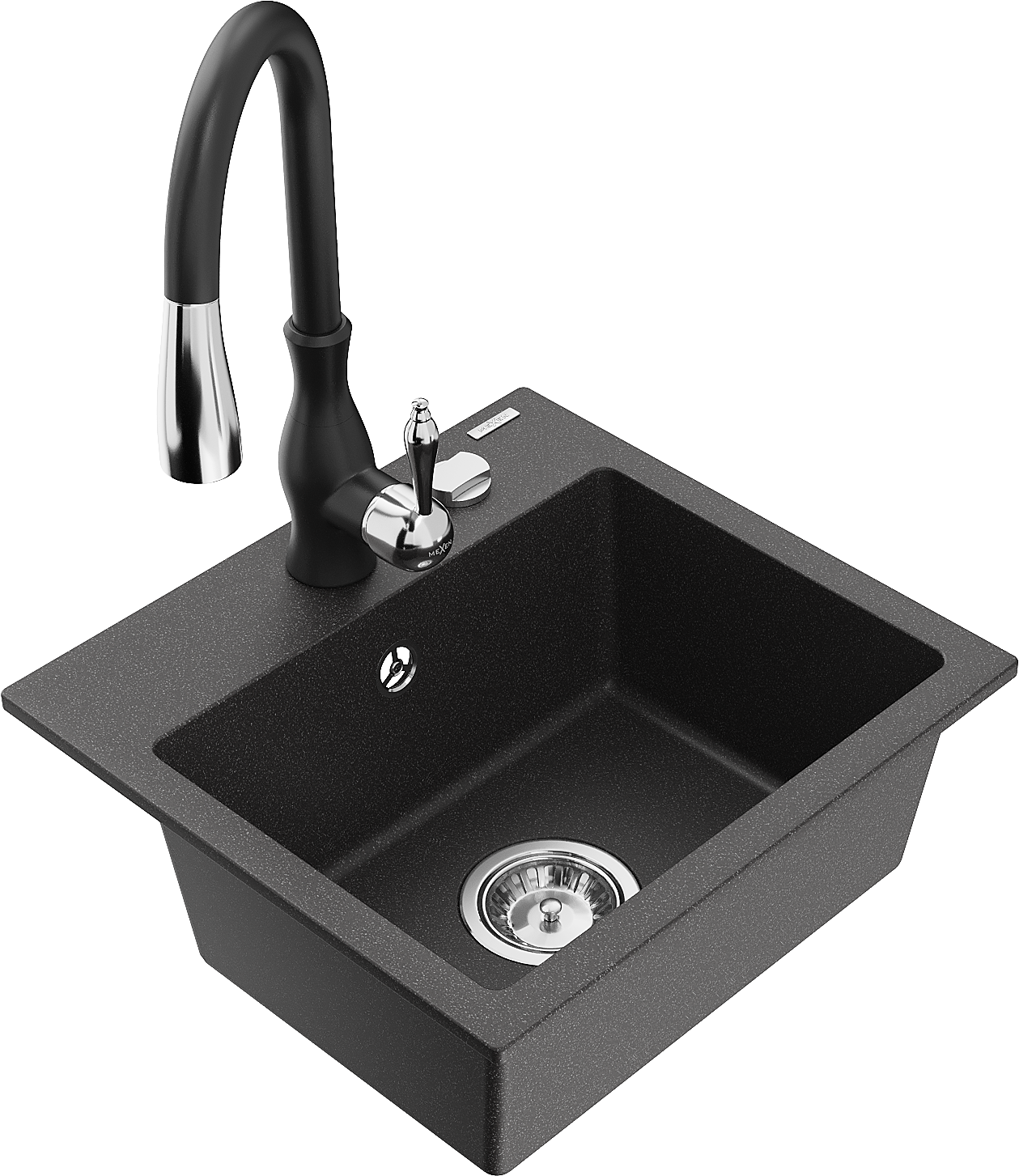 Mexen Milo 1-bowl granite kitchen sink with Savita kitchen tap, black speckled - 6505-76-672601-70