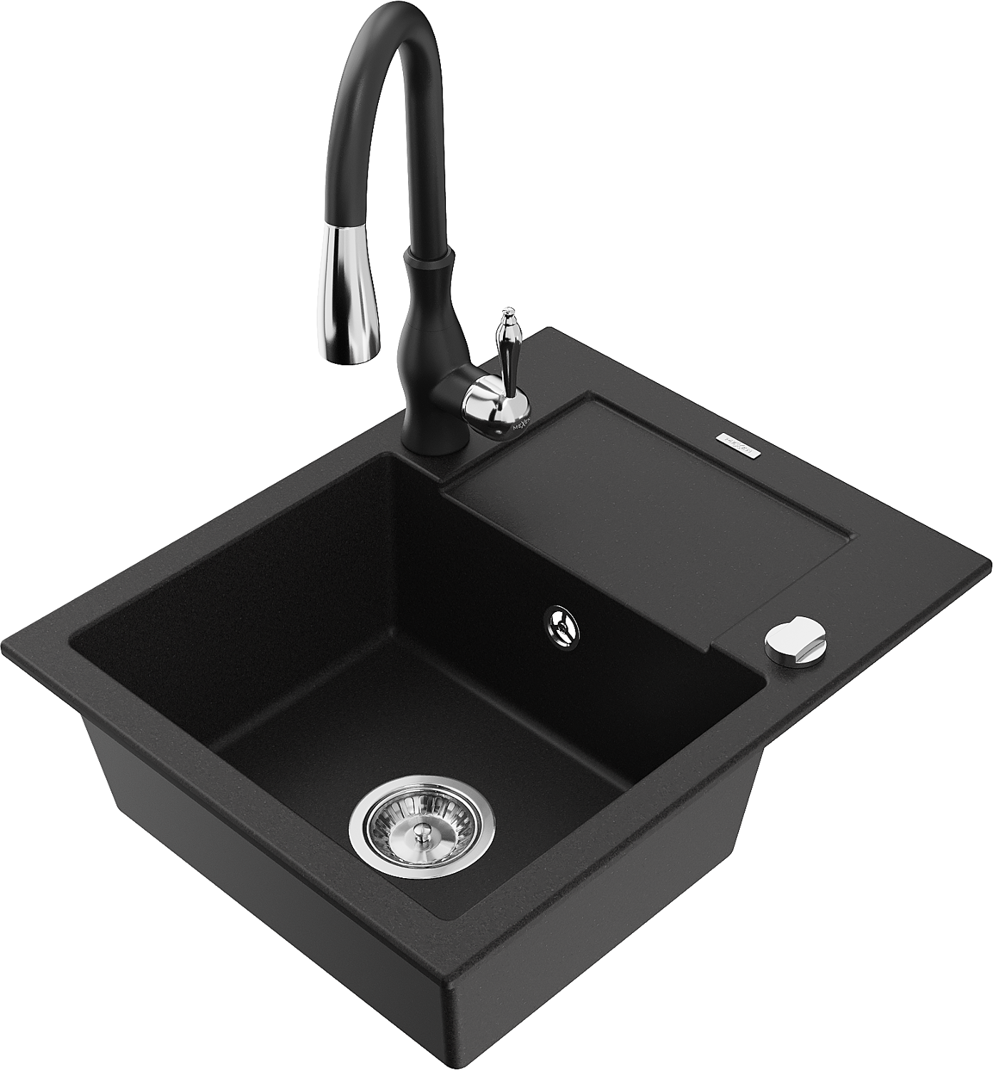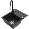 Mexen Enzo granite sink 1-bowl with drainer and Savita kitchen tap, black - 6506-77-672601-70