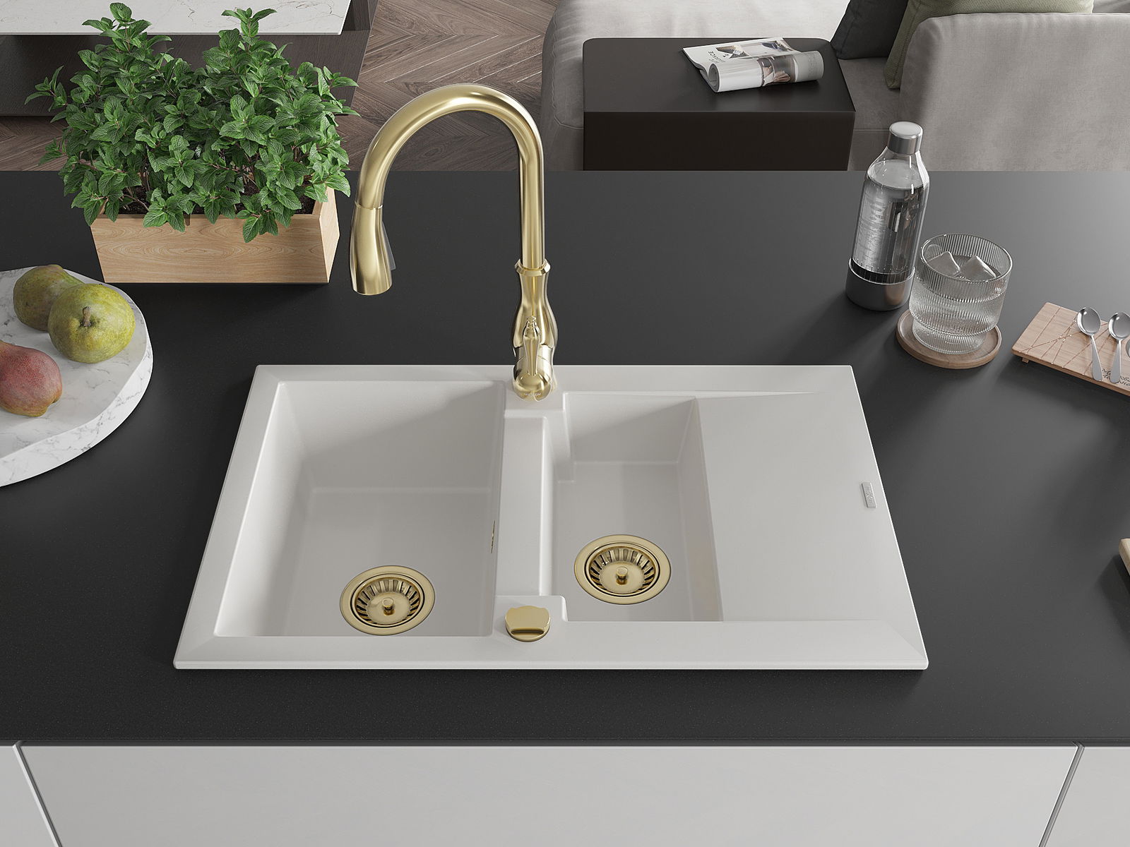 Choosing a sink with a draining board is a practical solution that allows you to set aside washed dishes or vegetables and fruits. The draining board makes daily cooking easier and helps maintain order in the kitchen.