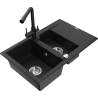 Mexen Gaspar granite sink 1.5-bowl with drainer and Duero kitchen tap, grey - 6507-71-671600-71